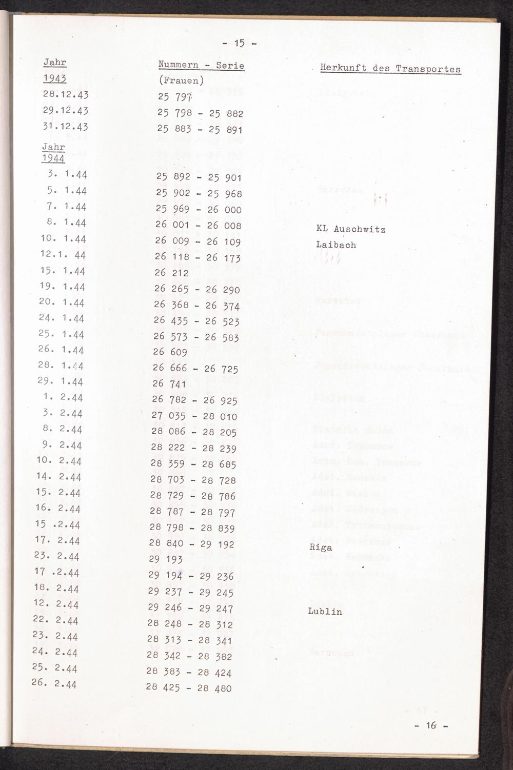 Nummernbesetzung für Konzentrationslager Lichtenburg und Ravensbrück / International Tracing Service
