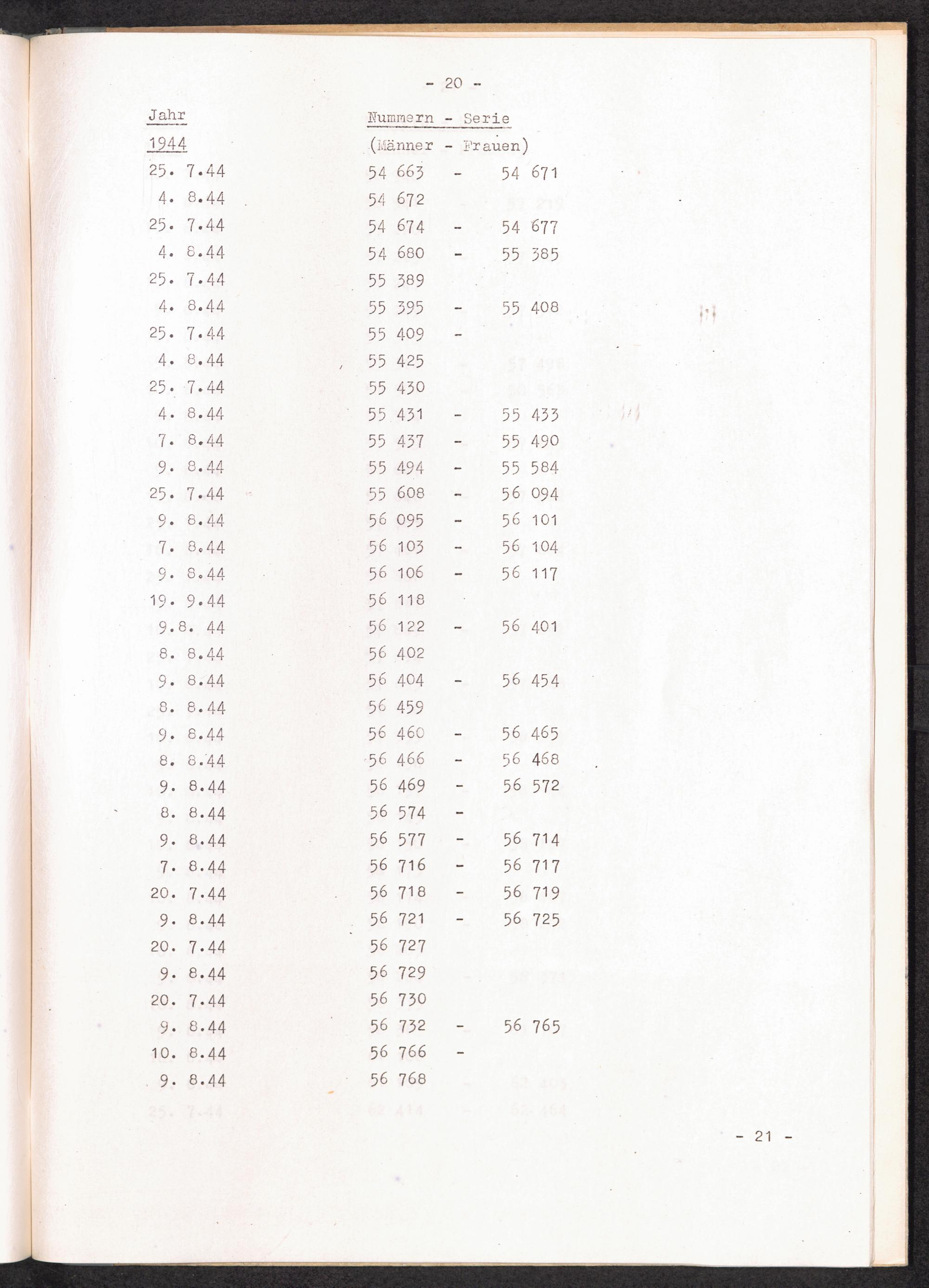 Nummernbesetzung für Konzentrationslager Stutthof / International Tracing Service