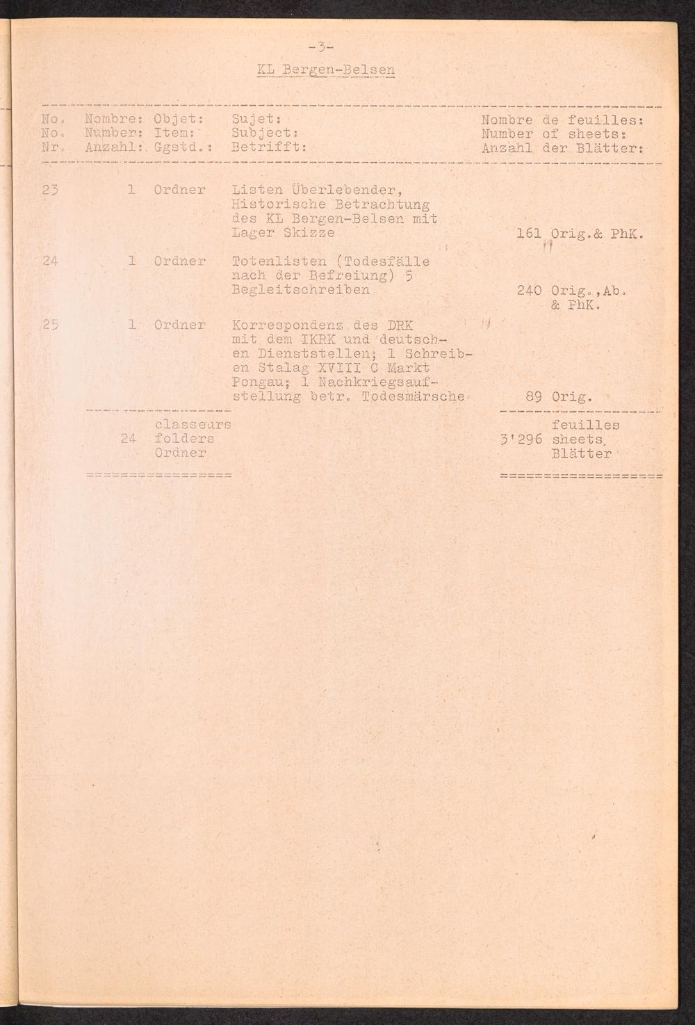 Inventar Konzentrations-Lager (Teil 1) / International Tracing Service (ITS)Inventaire Camps De Concentration et Section Historique (1ère partie) / International Tracing Service (ITS)Inventory Concentration Camps and Historical Section (first part) / International Tracing Service (ITS)