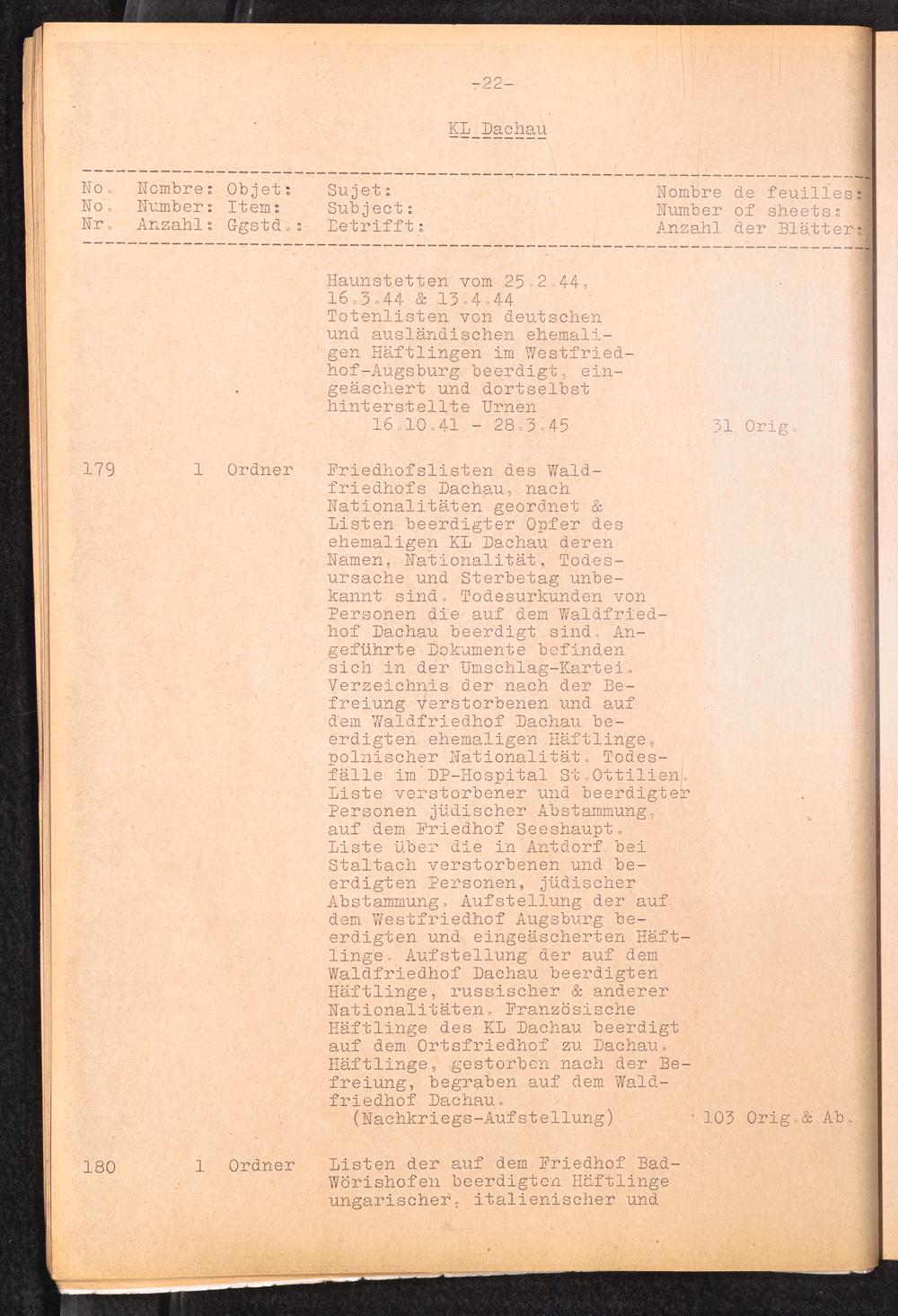 Inventar Konzentrations-Lager und Historische Abteilung (Teil 2) / International Tracing Service (ITS)Inventaire Camps De Concentration et Section Historique (2ème partie) / International Tracing Service (ITS)Inventory Concentration Camps and Historical Section (second part) / International Tracing Service (ITS)
