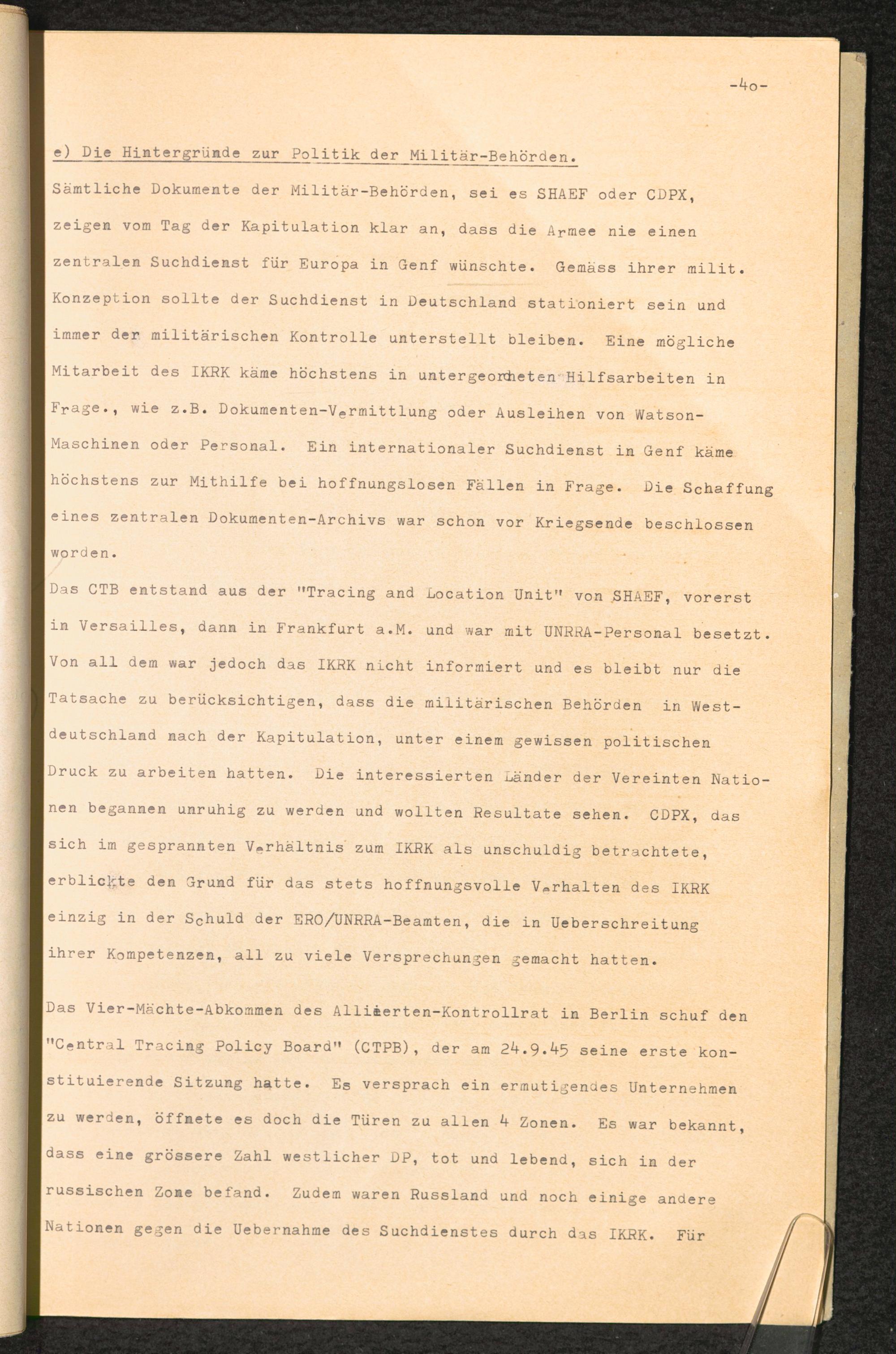 Geschichte der UNRRA in Europa unter besonderer Berücksichtigung der DP und des CTB in Deutschland / International Tracing Service