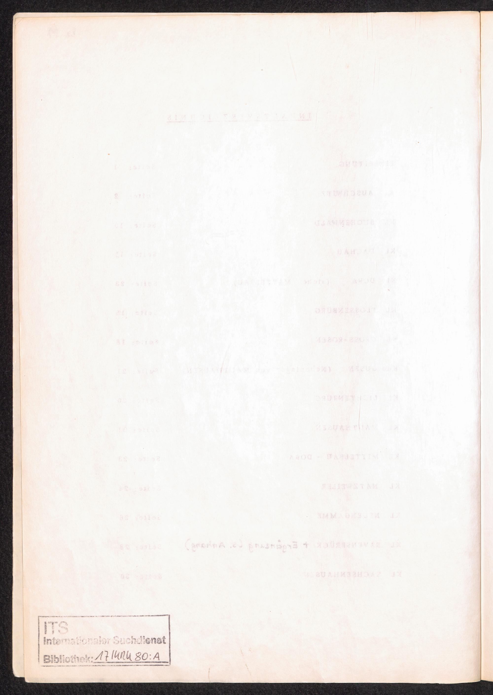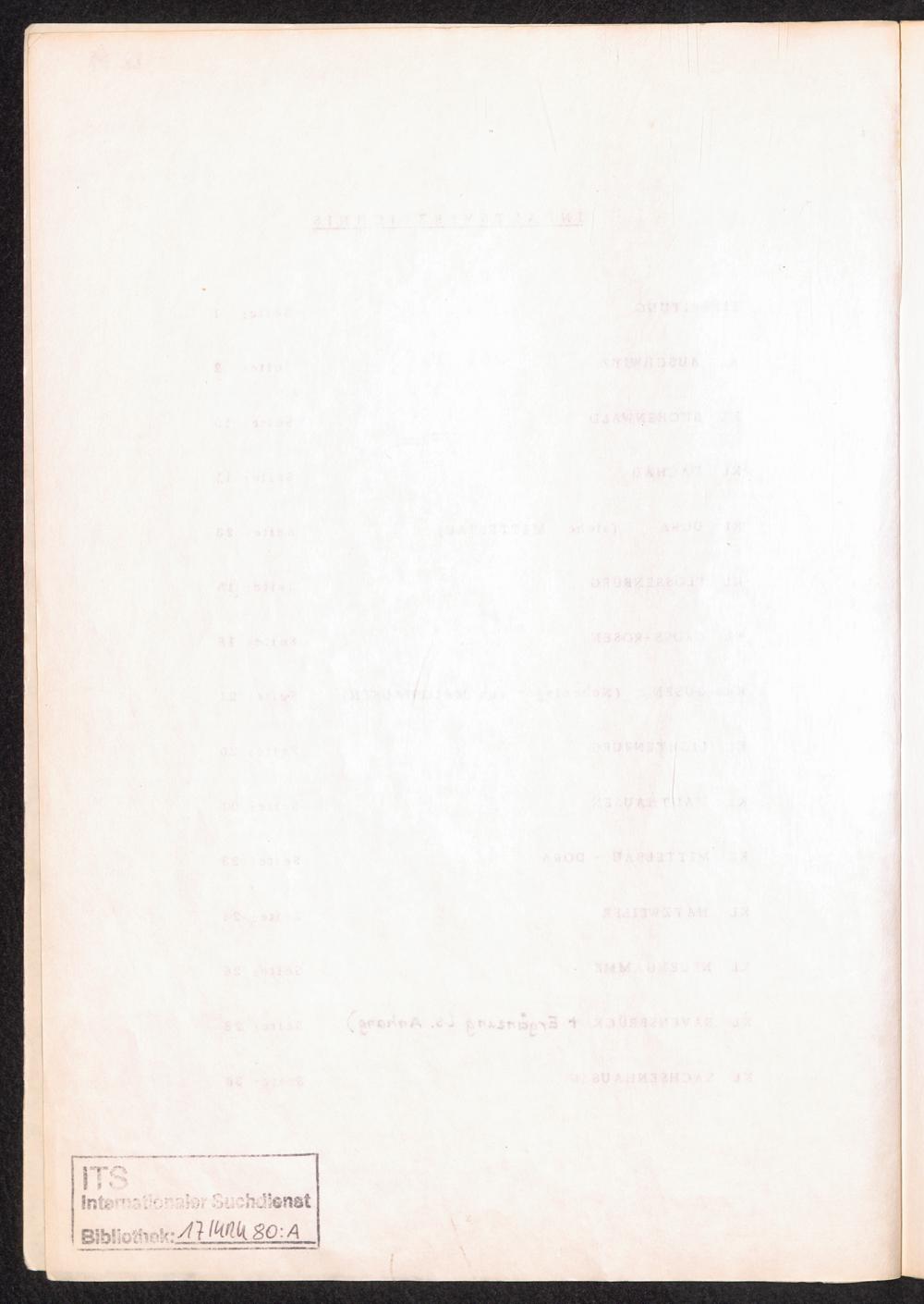 Häftlingsnummernzuteilung in Konzentrationslagern (mit Ergänzungen) Inhaltsverzeichnis