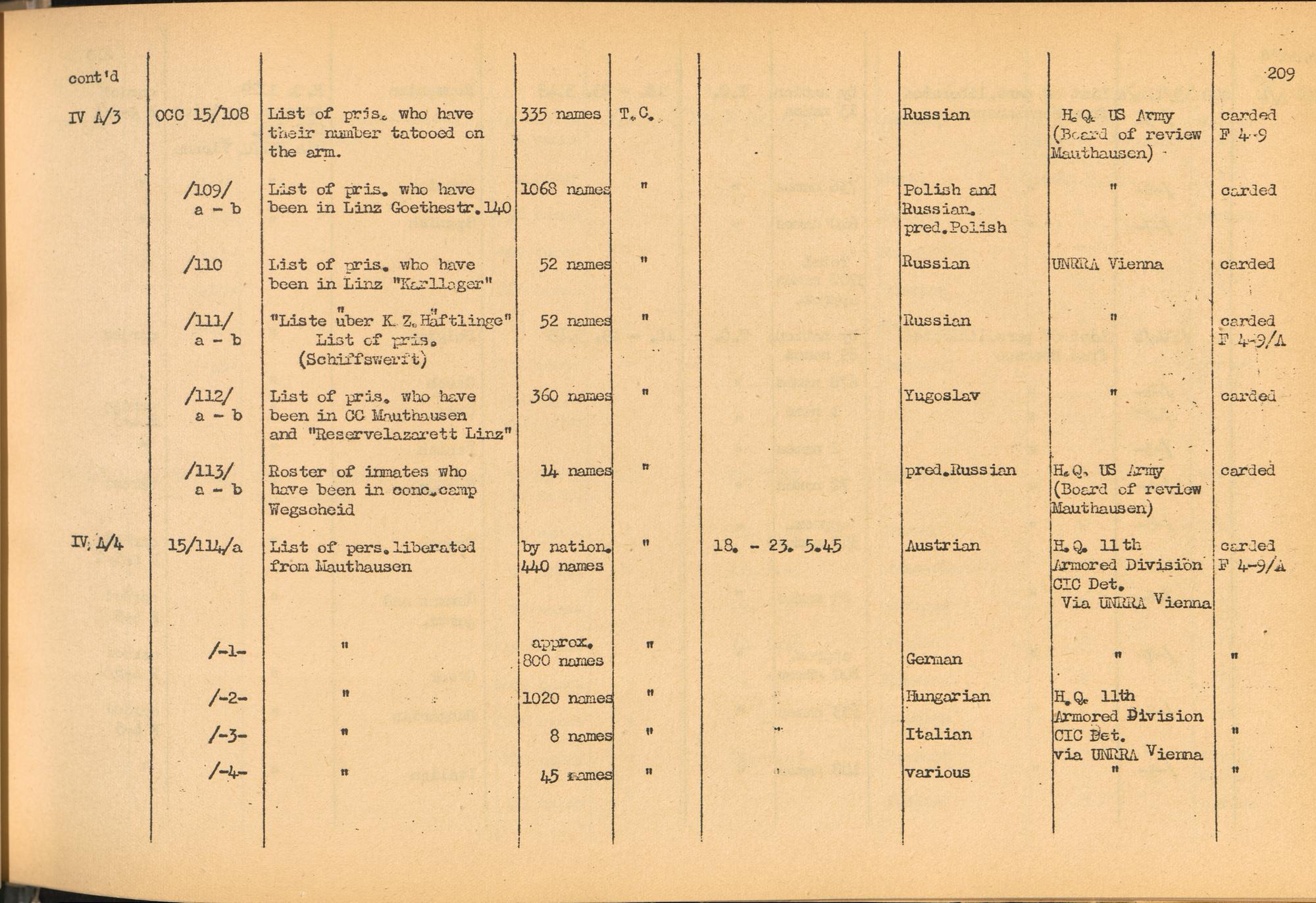 Band 2. Katalog der Konzentrationslager-Dokumente die sich bei dem International... CC Mauthausen