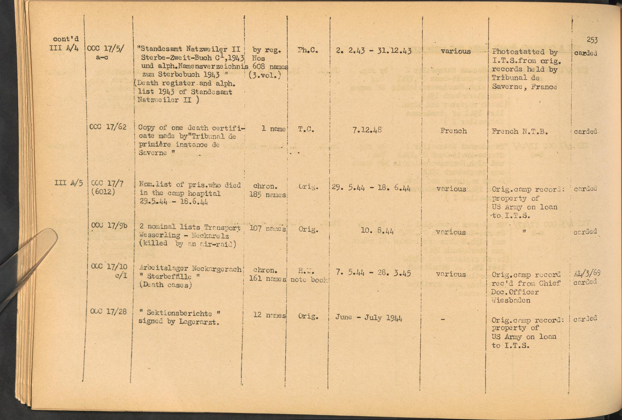 Band 2. Katalog der Konzentrationslager-Dokumente die sich bei dem International... CC Natzweiler