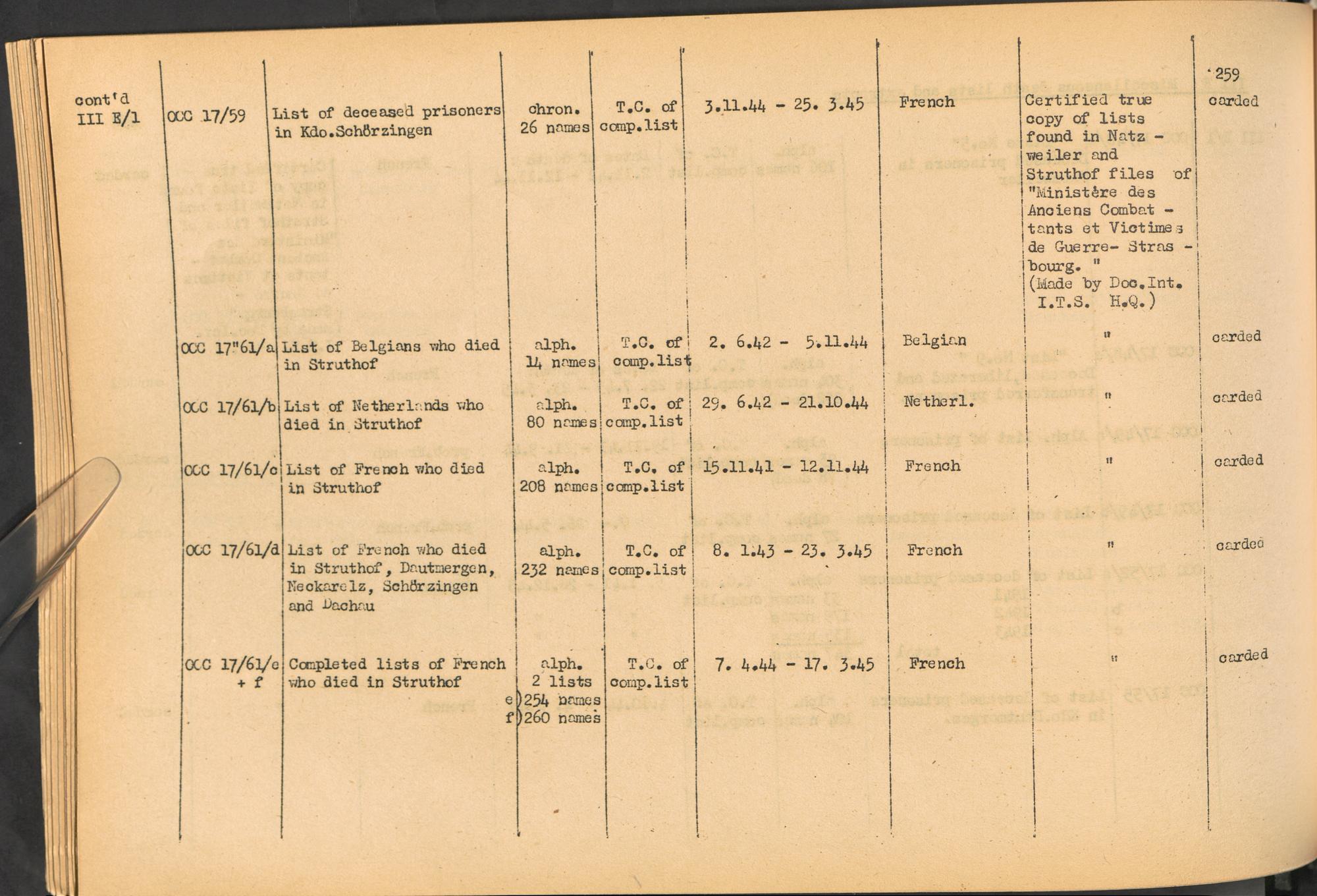Band 2. Katalog der Konzentrationslager-Dokumente die sich bei dem International... CC Natzweiler