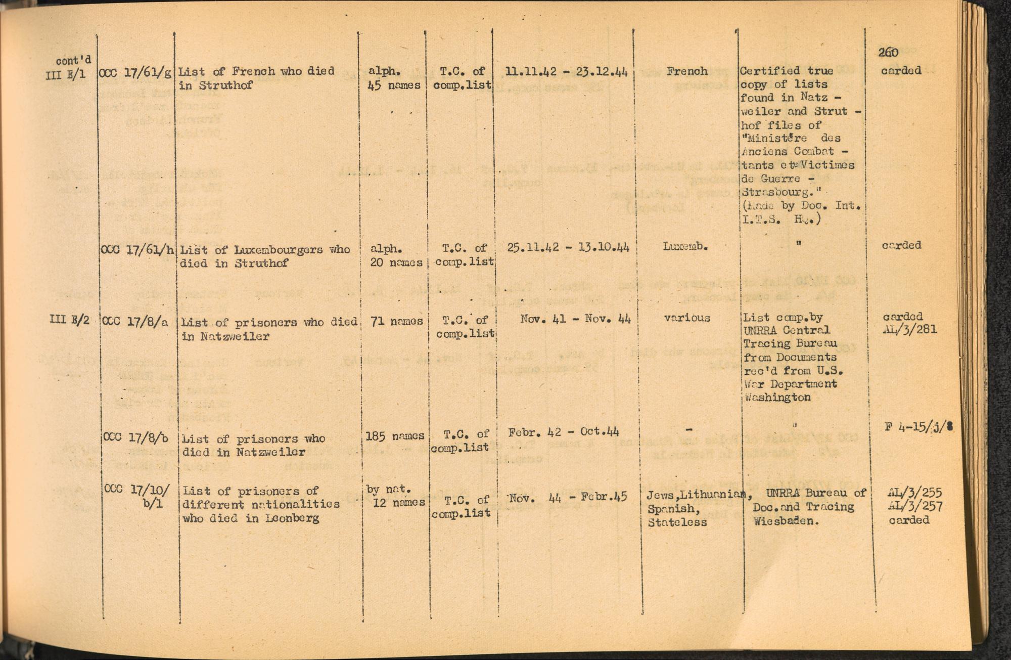 Band 2. Katalog der Konzentrationslager-Dokumente die sich bei dem International... CC Natzweiler