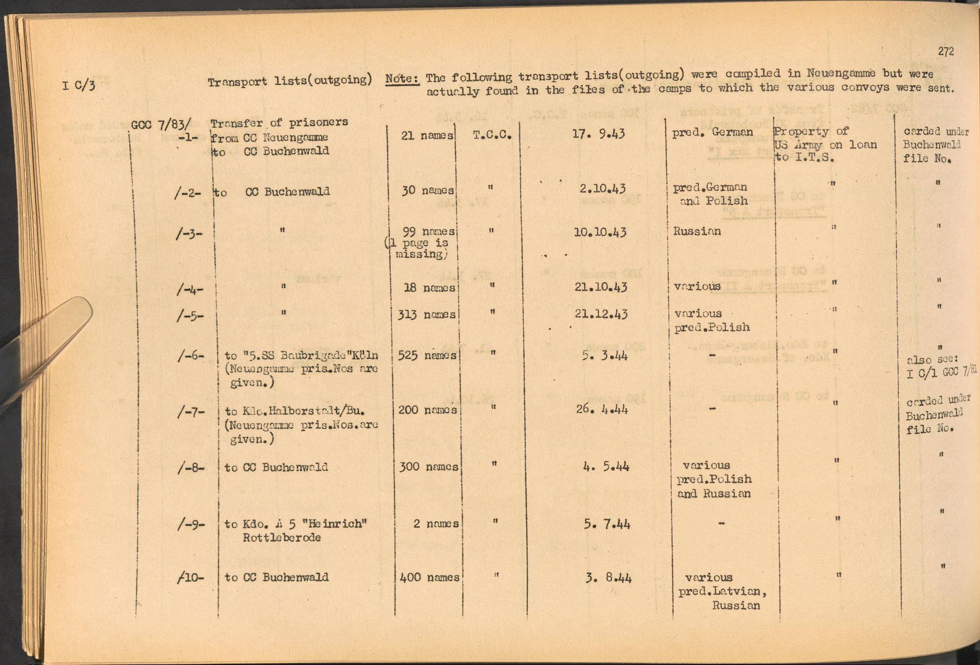 Band 2. Katalog der Konzentrationslager-Dokumente die sich bei dem International... CC Neuengamme