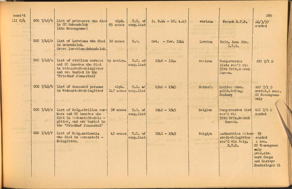 Band 2. Katalog der Konzentrationslager-Dokumente die sich bei dem International... CC Neuengamme