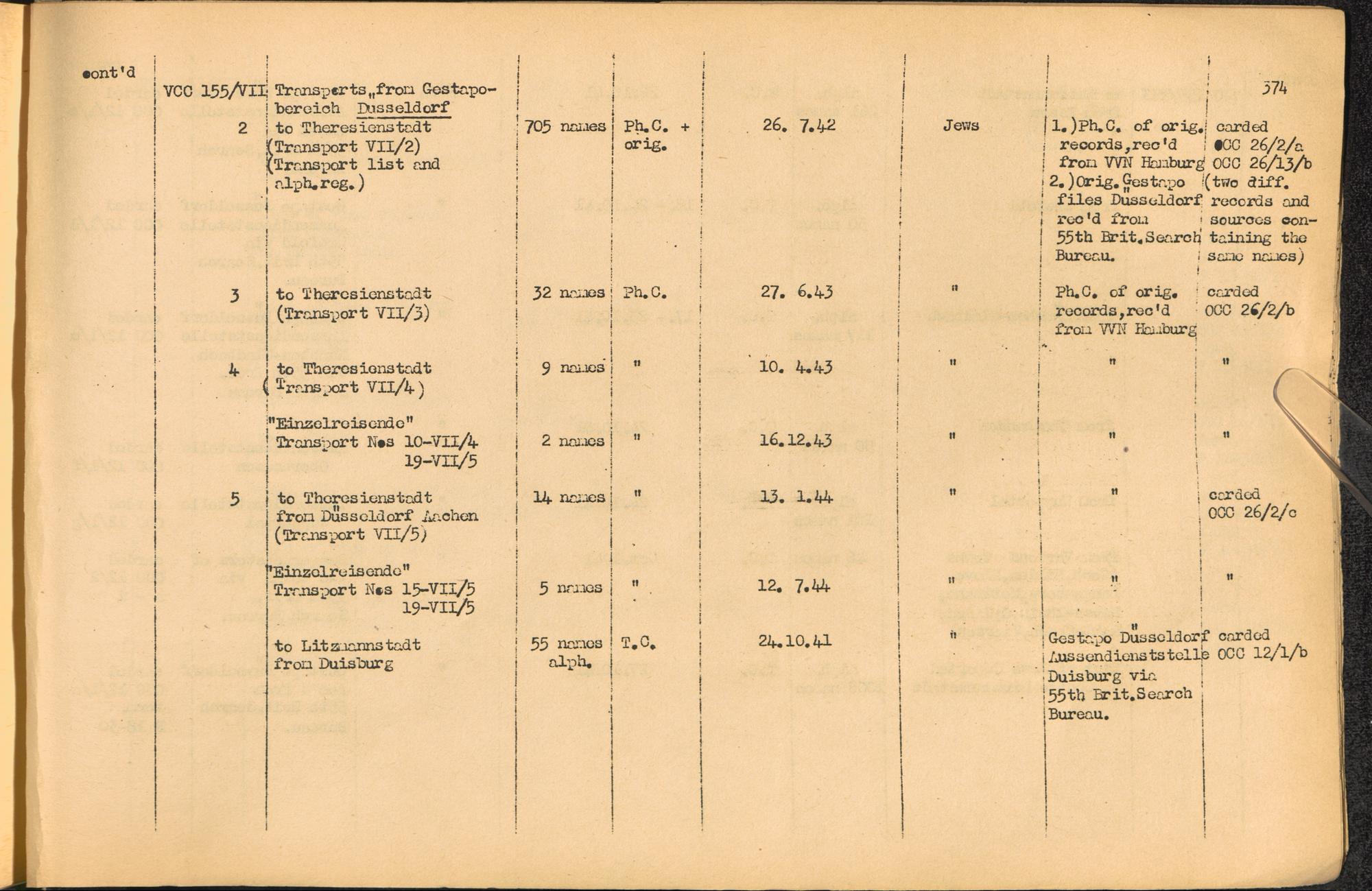 Band 2. Katalog der Konzentrationslager-Dokumente die sich bei dem International... Gestapo Transports of Jews from Germany to the East