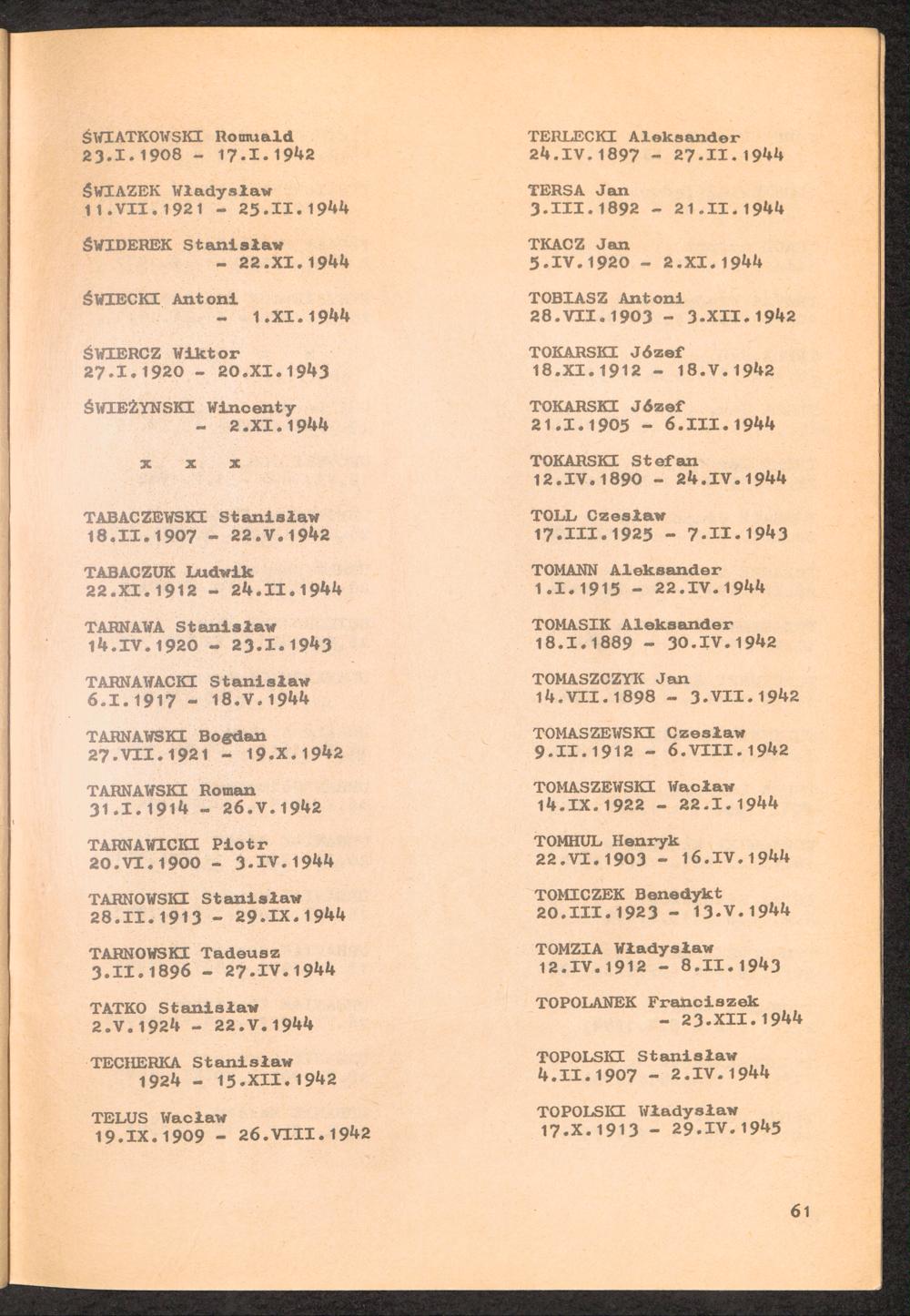 1981: Przezylismy Gross Rosen Tom III, Ksiega pomordowanych, Zeszyt 1 : Wykaz pomordowanych ze zbiorow Romana Olszyny