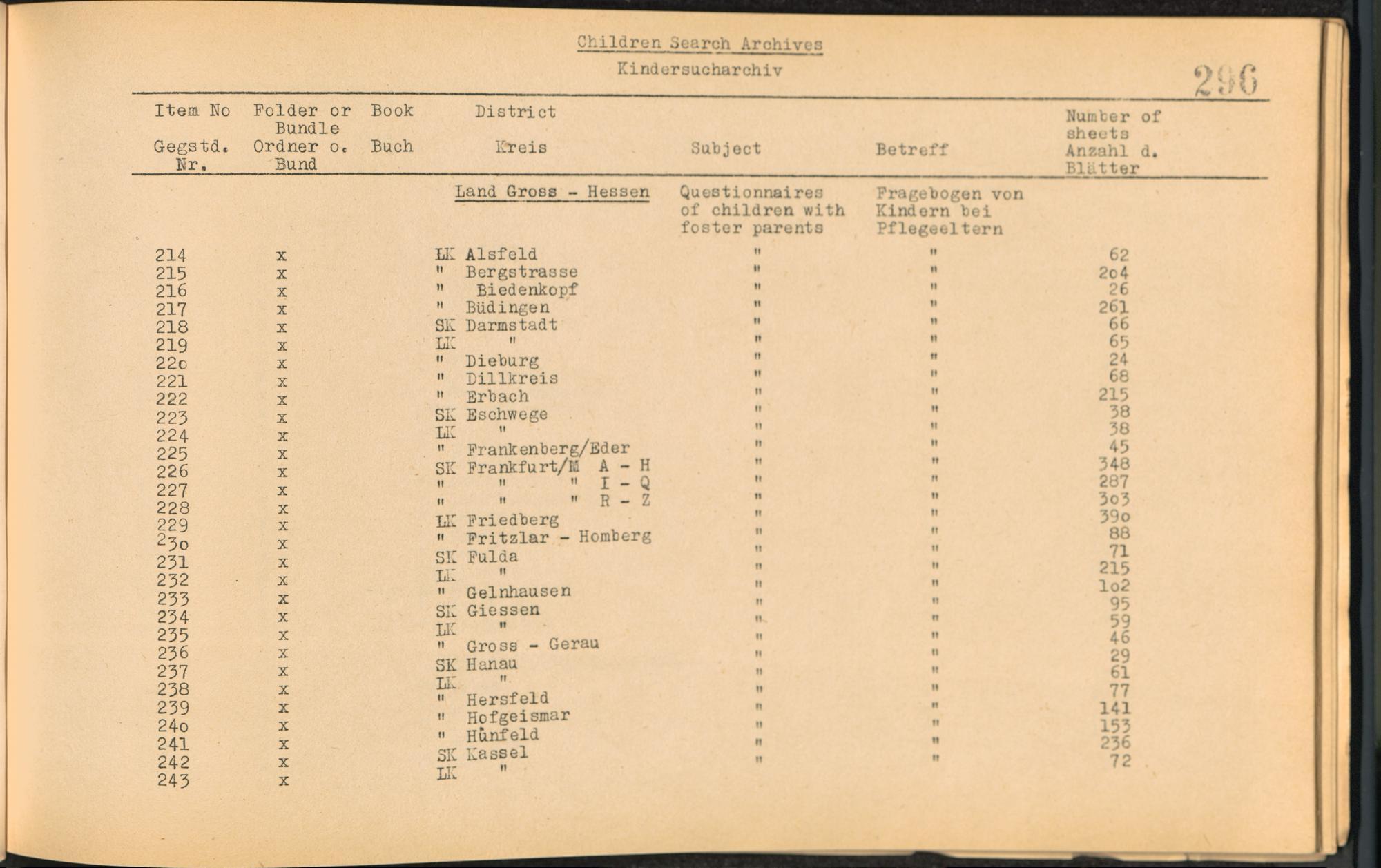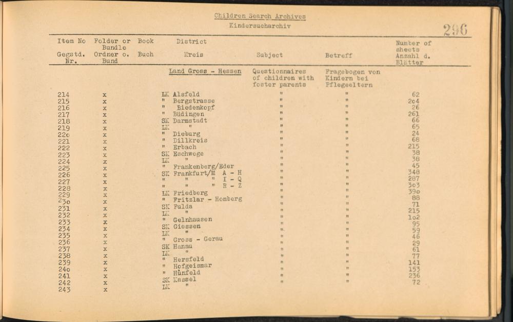 Catalogue of Records held by the International Tracing Service of the Allied High Commission For Germany at Arolsen : Vol. I