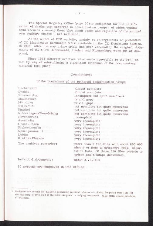 30 years Interational Tracing Service thereof 20 years under the direction of the... The Archives of the ITS Concentration Camp Documents Section