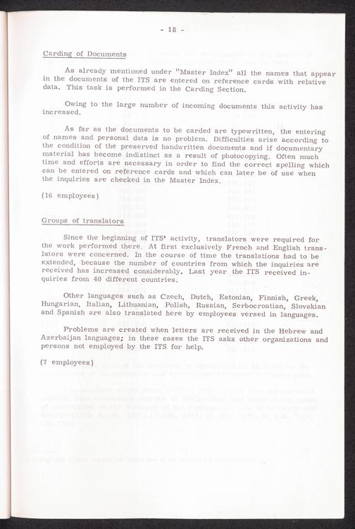 30 years Interational Tracing Service thereof 20 years under the direction of the... The Archives of the ITS Carding of Documents