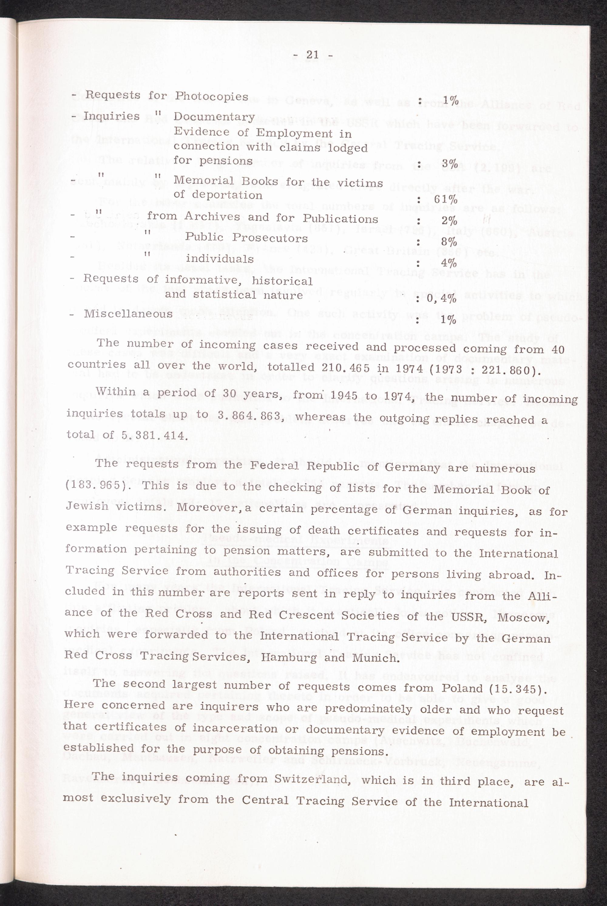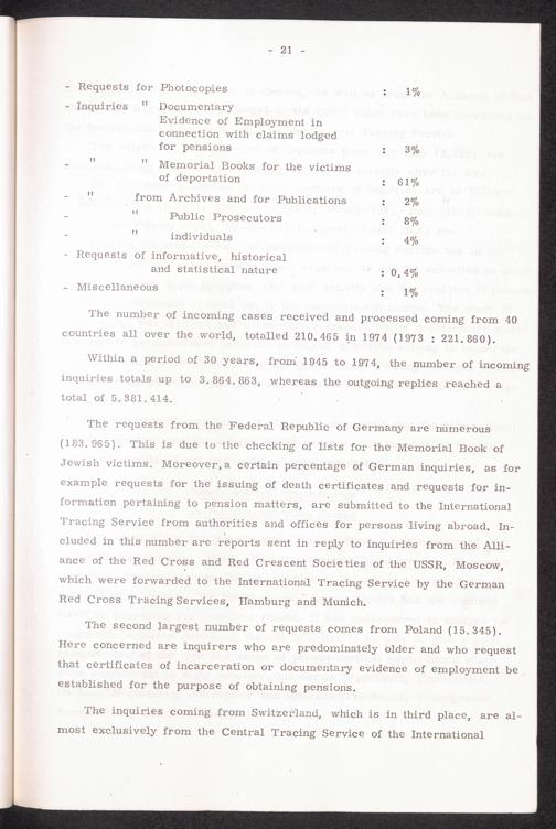 The International Tracing Service : Its origin, tasks and activities - 30 years in the service of humanity. Therof 20 years under the direction of the International Committe of the Red Cross in Geneva