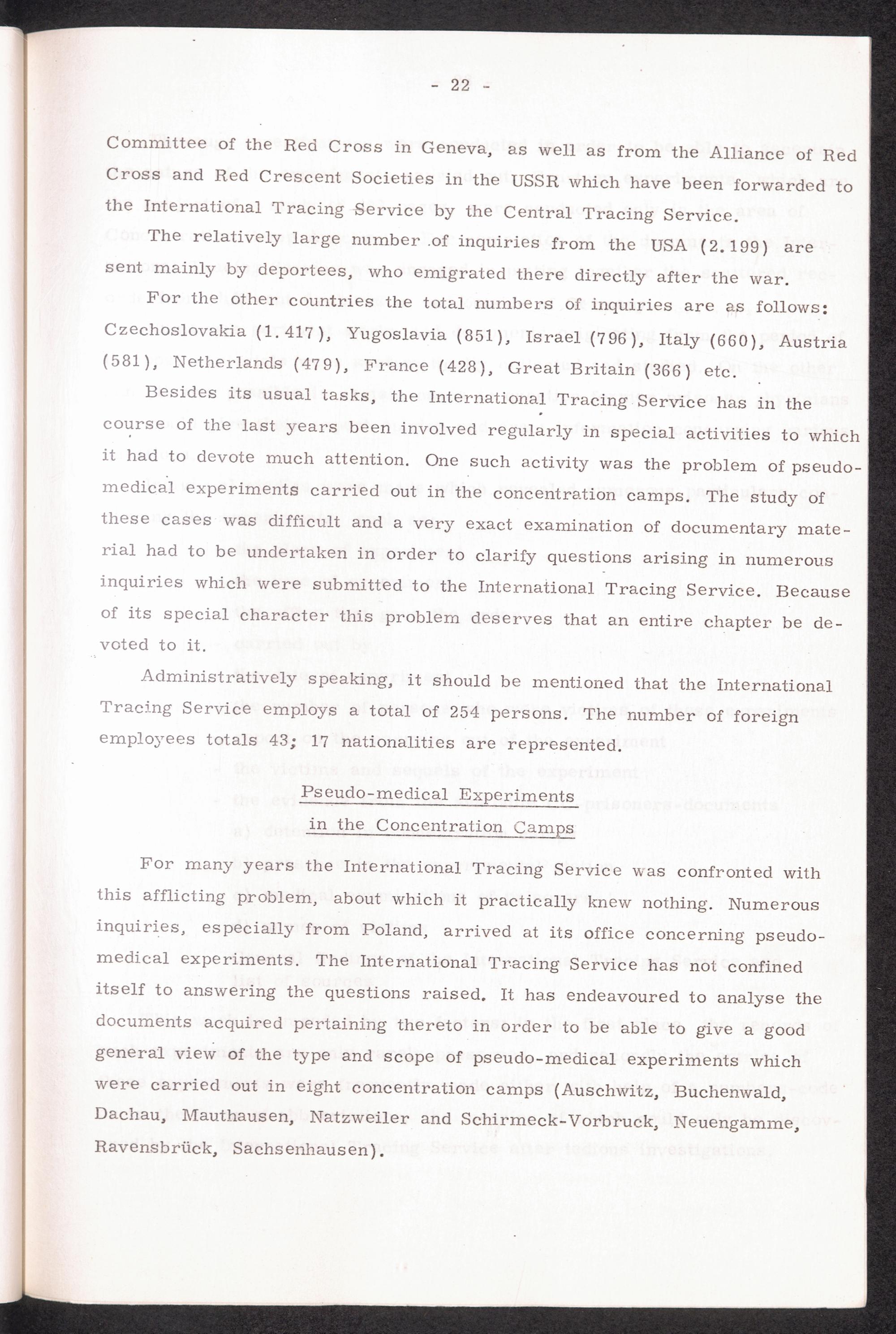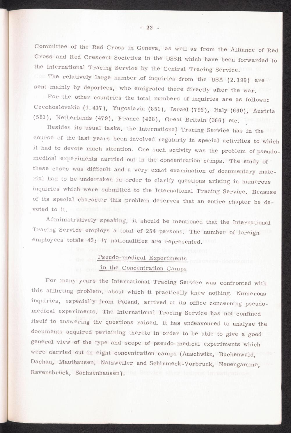 The International Tracing Service : Its origin, tasks and activities - 30 years in the service of humanity. Therof 20 years under the direction of the International Committe of the Red Cross in Geneva