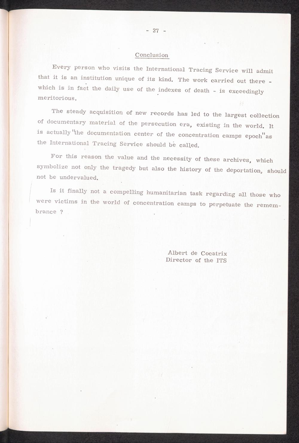 The International Tracing Service Conclusion