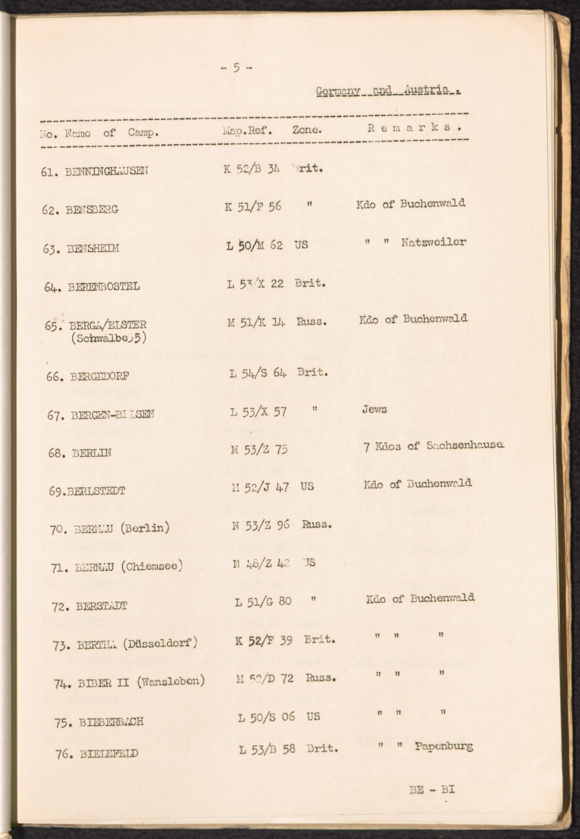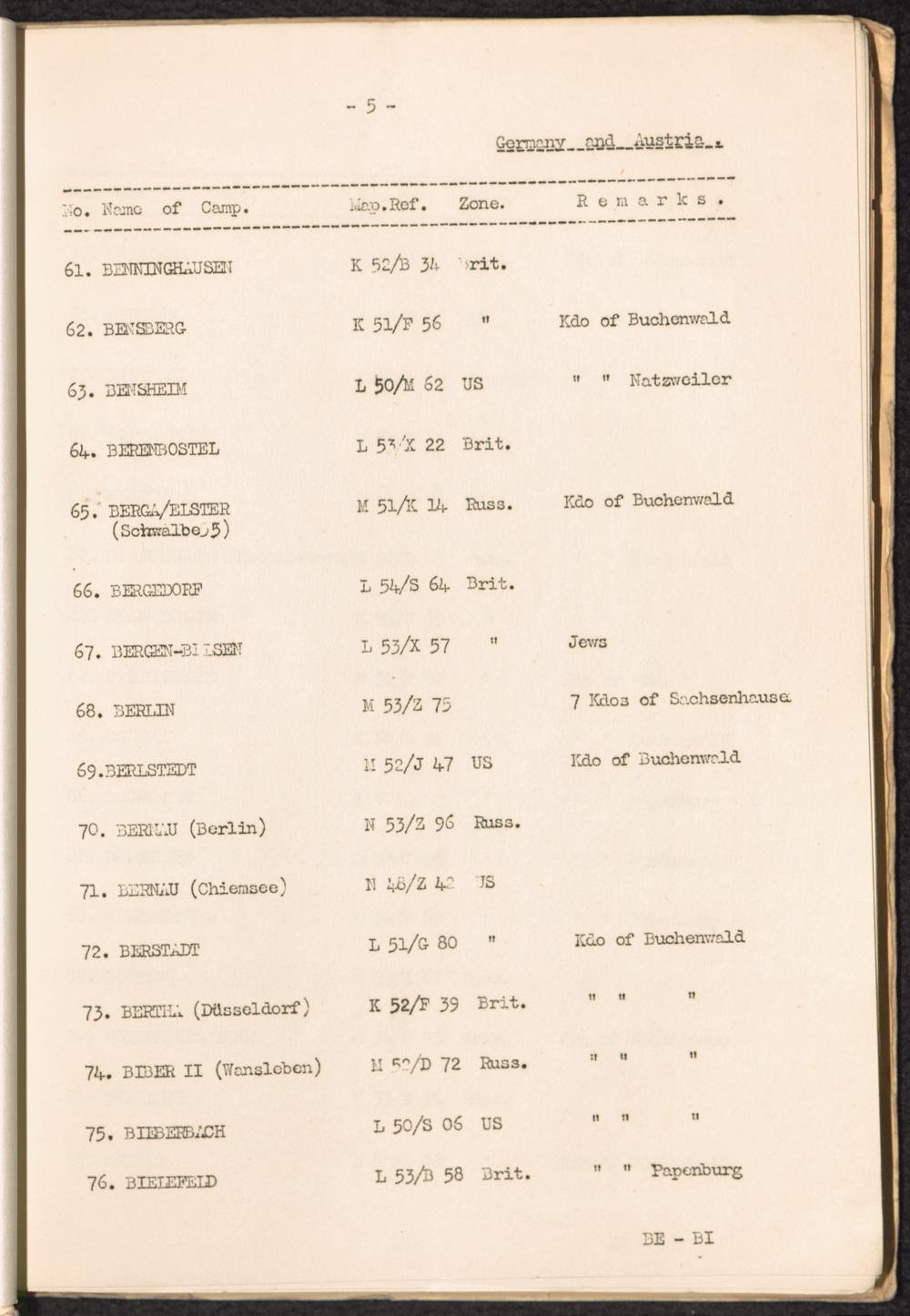 List of Concentration Camps and their Kommandos in Germany and Occupied Countries... Germany and Austria