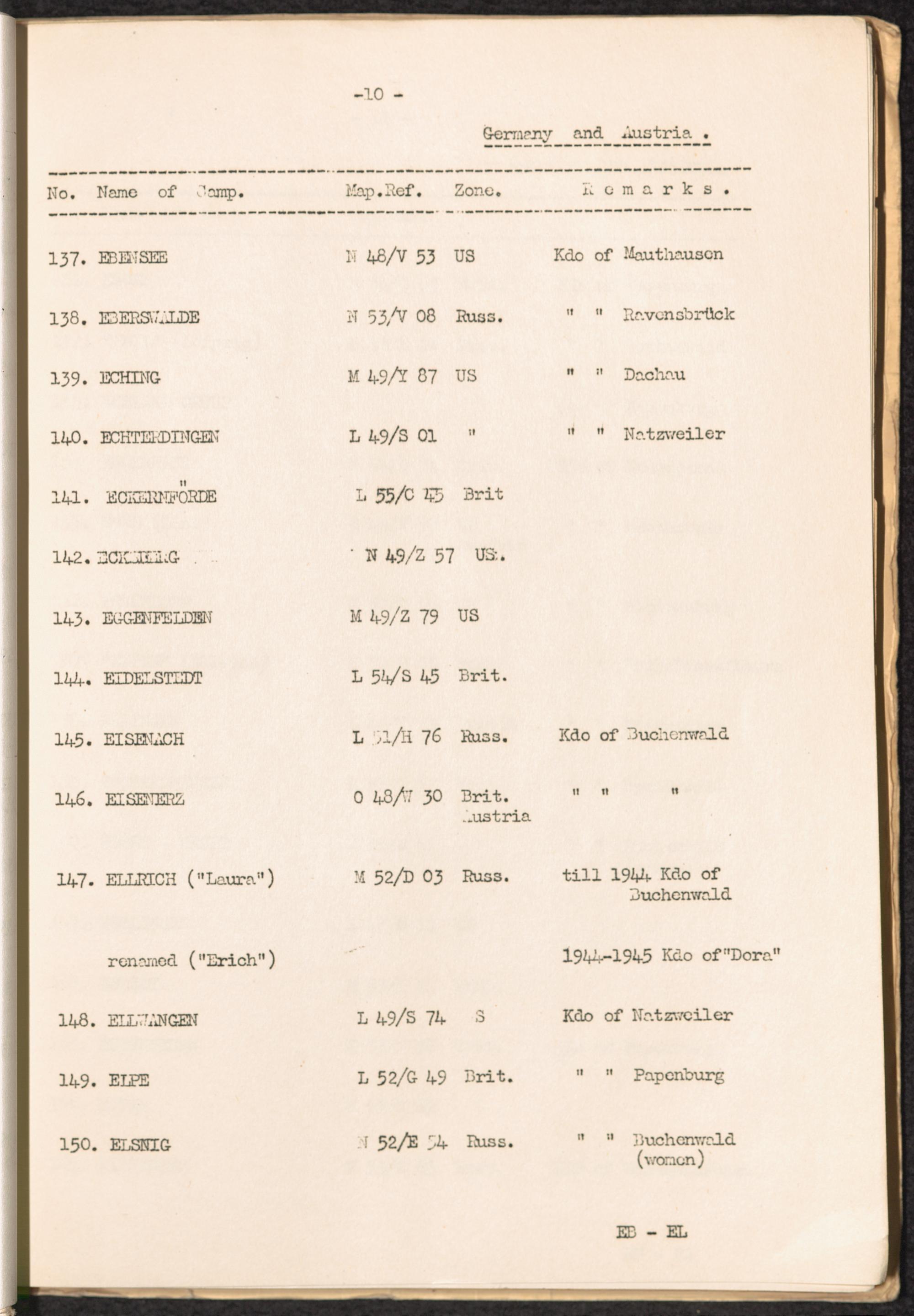 List of Concentration Camps and their Kommandos in Germany and Occupied Countries... Germany and Austria