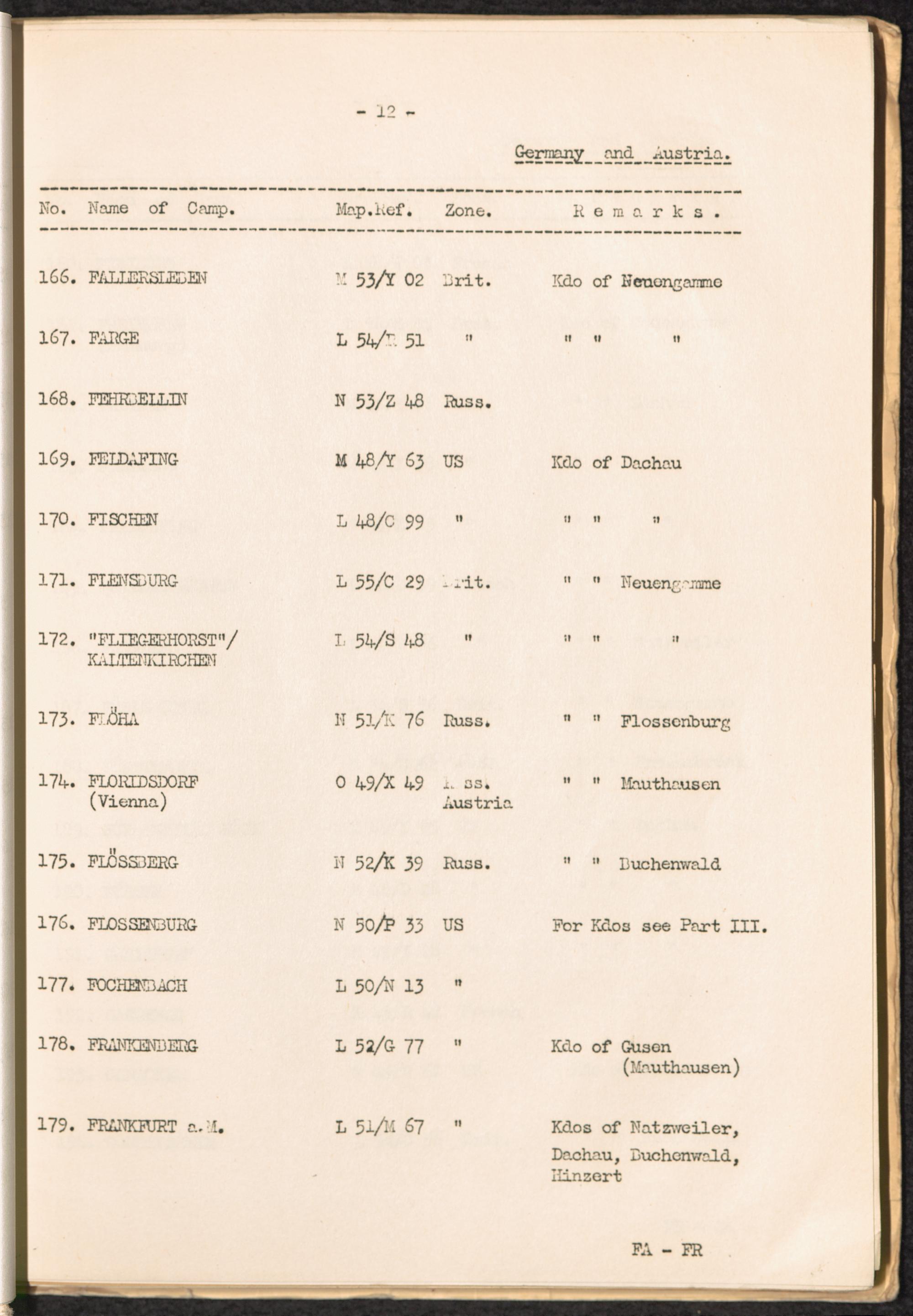 List of Concentration Camps and their Kommandos in Germany and Occupied Countries... Germany and Austria