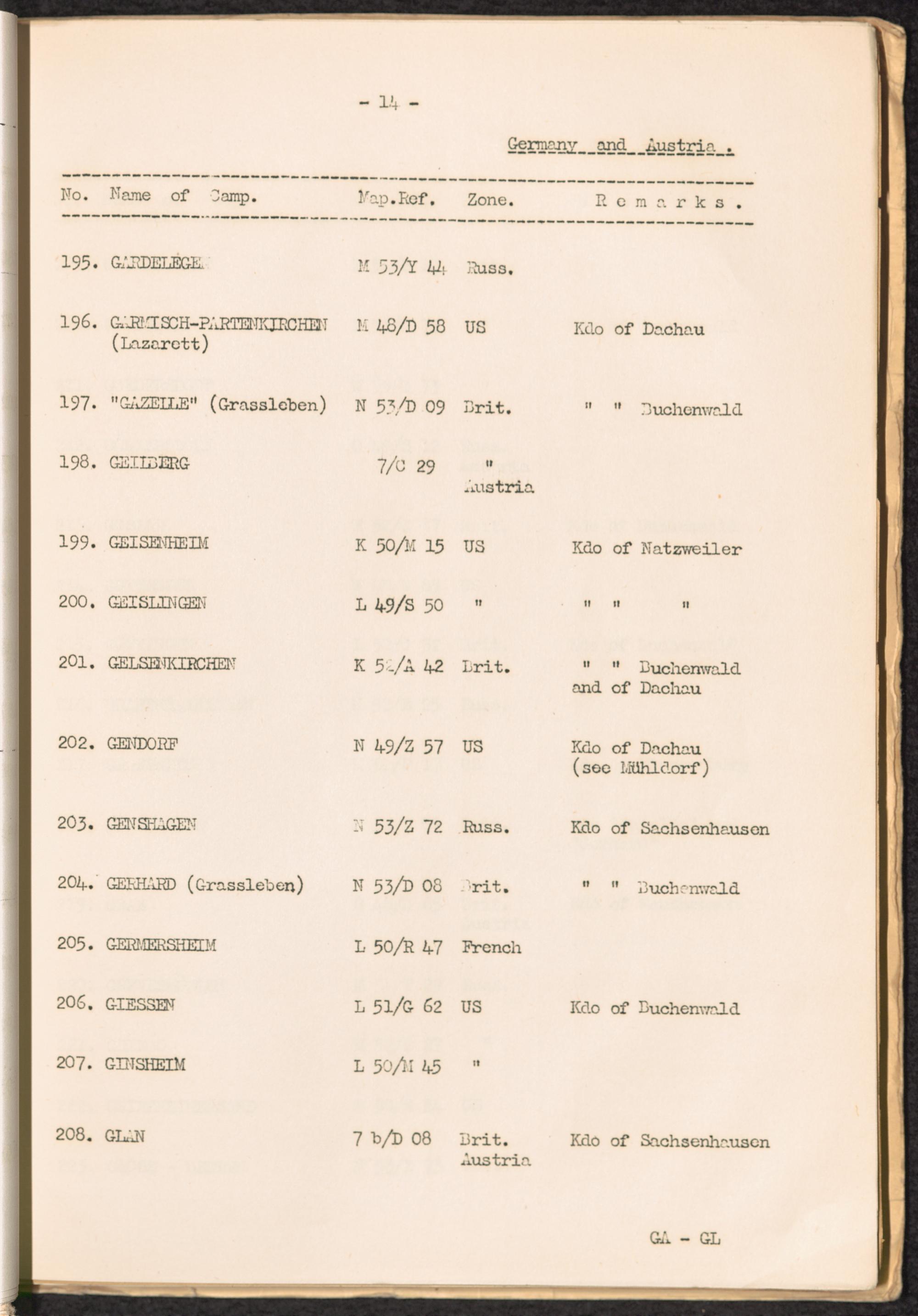 List of Concentration Camps and their Kommandos in Germany and Occupied Countries... Germany and Austria