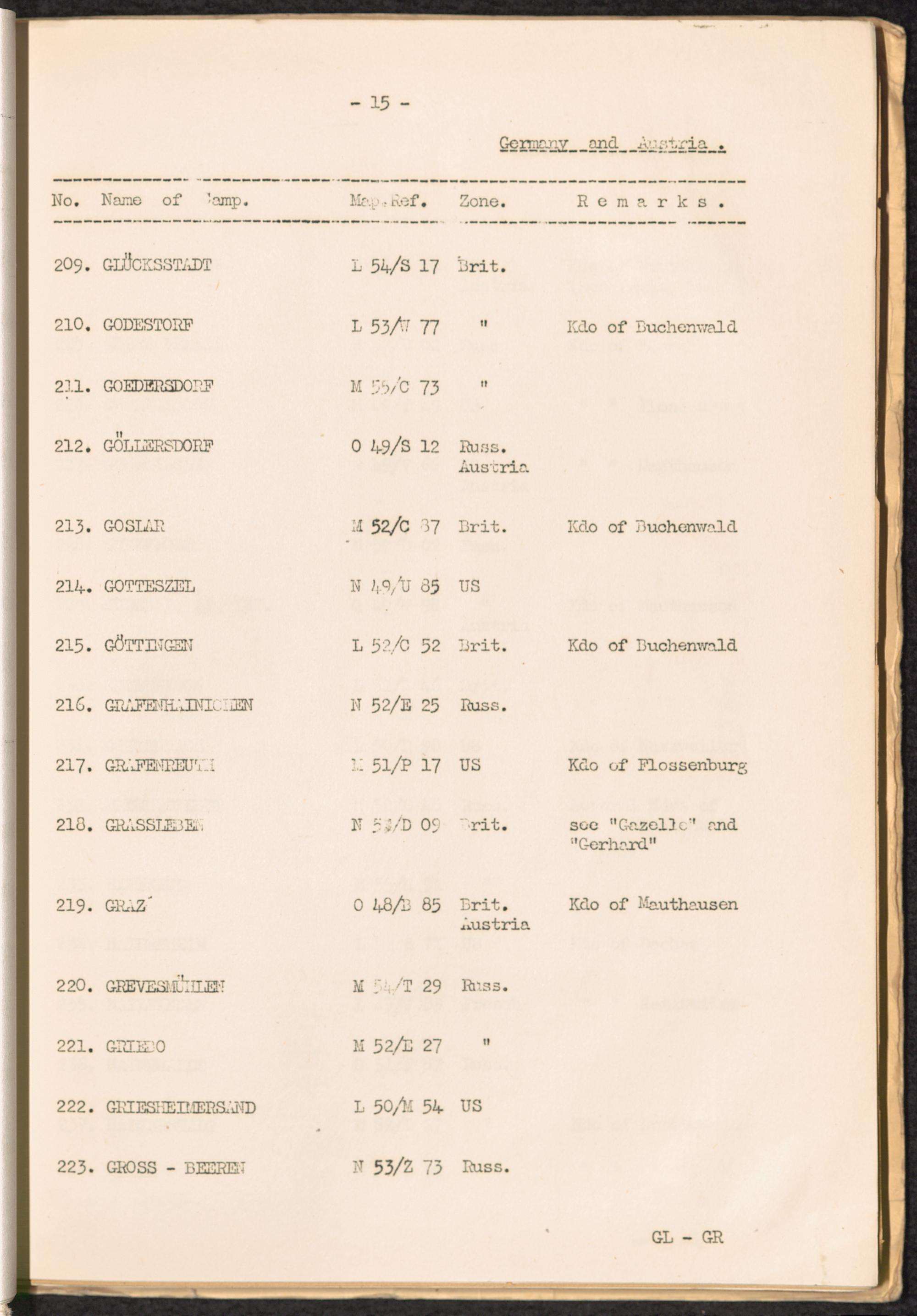 List of Concentration Camps and their Kommandos in Germany and Occupied Countries... Germany and Austria