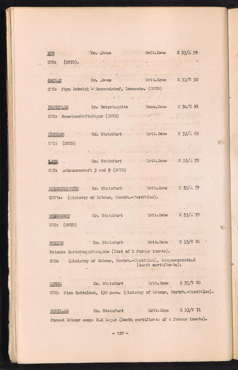 Band 1 (1949) Catalogue of Camps and Prisons in Germany and german-occupied Territories Sept. 1st, 1939 - May 8th, 1945 - I Ist Issue