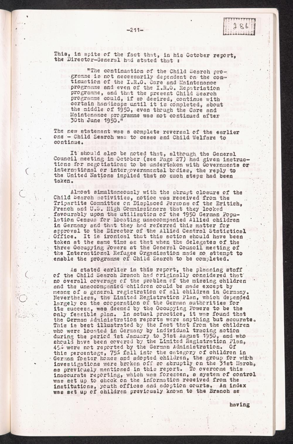 Historical Survey of Central Tracing Activity in Germany 1945 - 1951 Band 5. History of the Search for Unaccompanied Children History of the Search for unaccompanied Children Child Search Activities of the I.R.O.