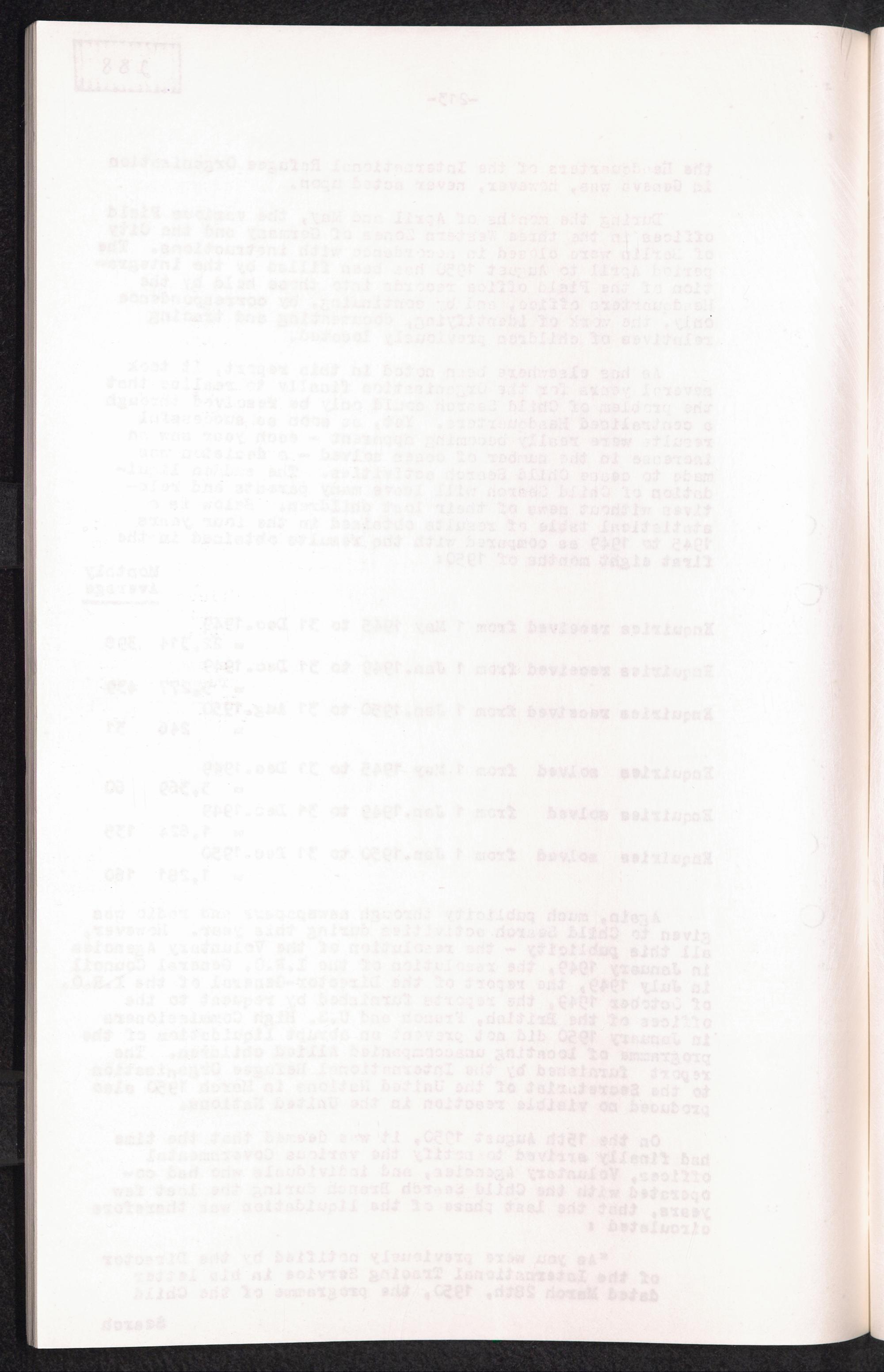 Historical Survey of Central Tracing Activity in Germany 1945 - 1951 Band 5. History of the Search for Unaccompanied Children History of the Search for unaccompanied Children Child Search Activities of the I.R.O.