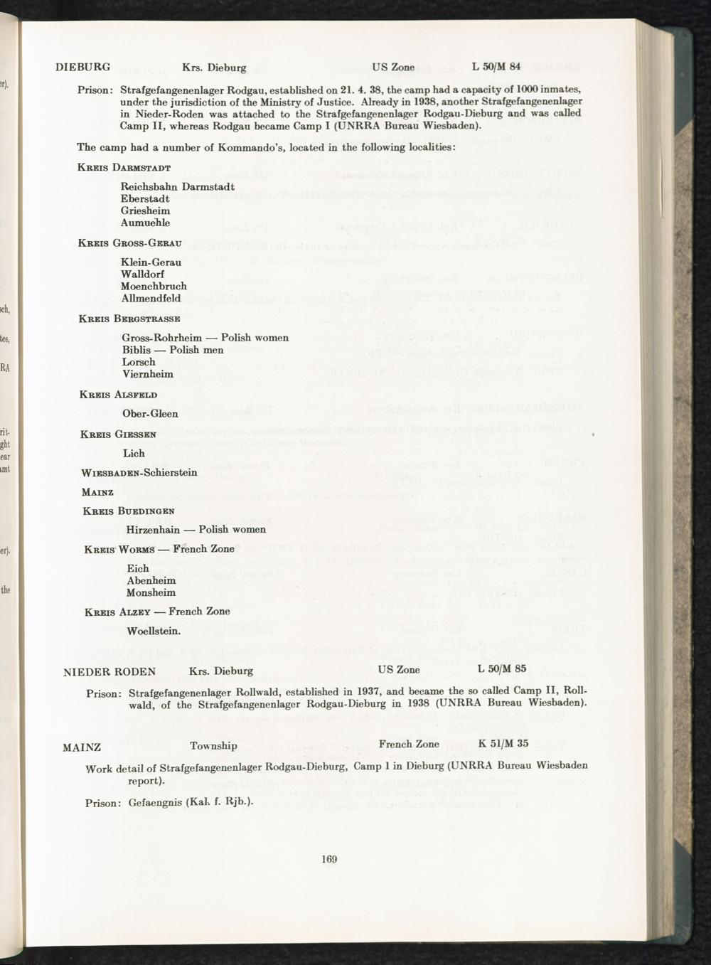 Catalogue of Camps and Prisons in Germany and german-occupied Territories Sept. 1st, 1939 - May 8th, 1945 : Ist Issue