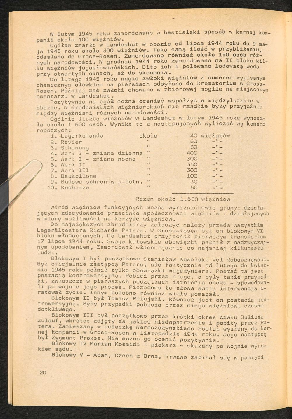 1982: Przezylismy Gross Rosen Tom II, Filie obozu kocentracyjnego Gross-Rosen, Zeszyt 1 : Kommando Landeshut