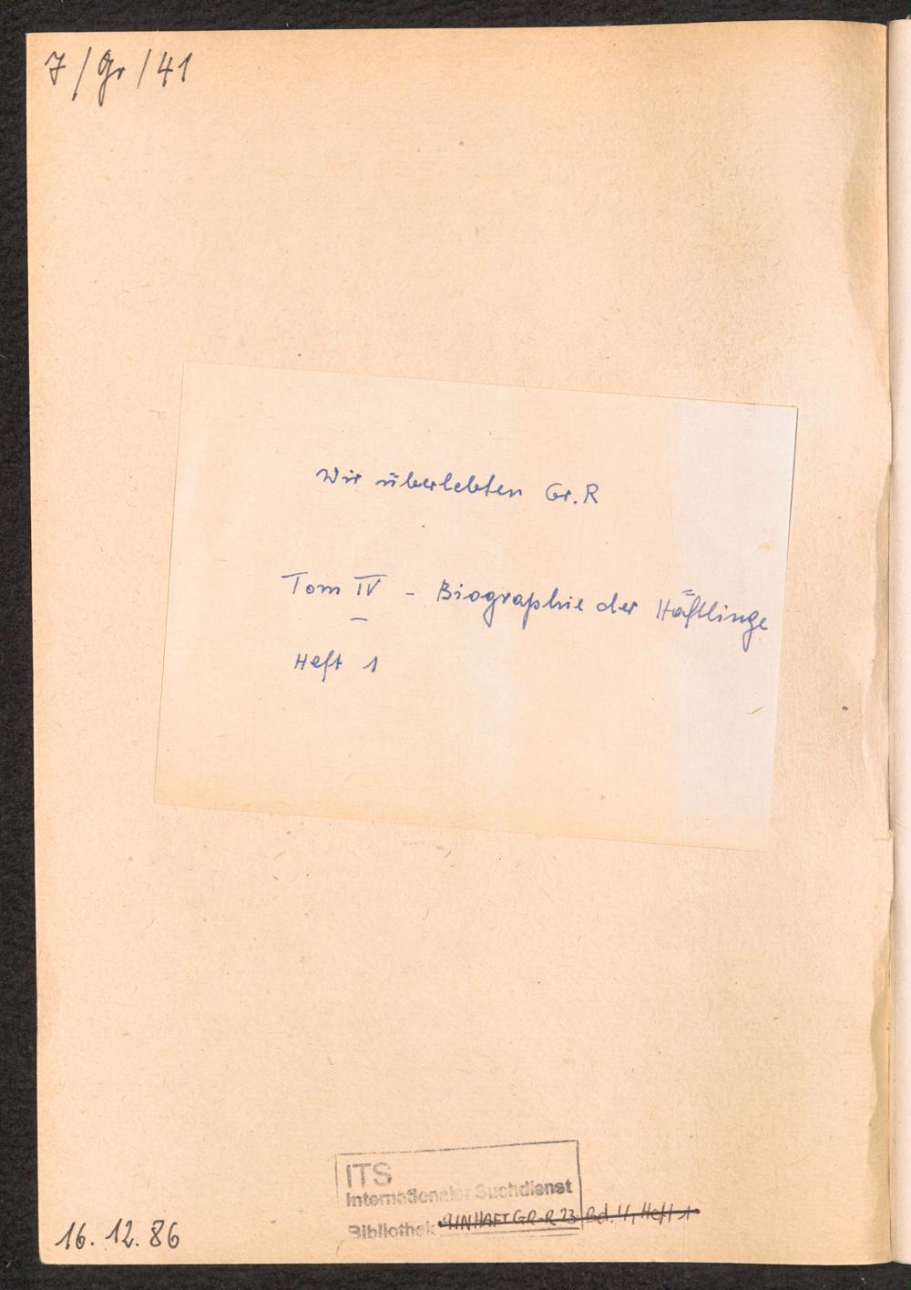 1984: Przezylismy Gross Rosen Tom IV, Biografie wieczniow, Zeszyt 1