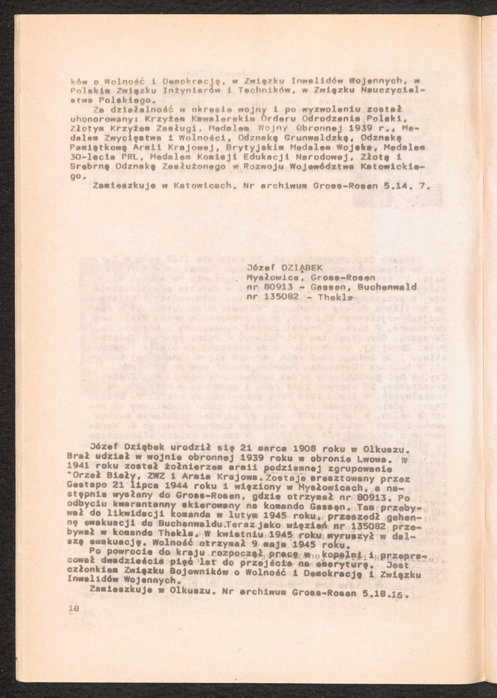 1984: Przezylismy Gross Rosen Tom IV, Biografie wieczniow, Zeszyt 2 : Wykaz pomordowanych ze zbiorow Romana Olszyny