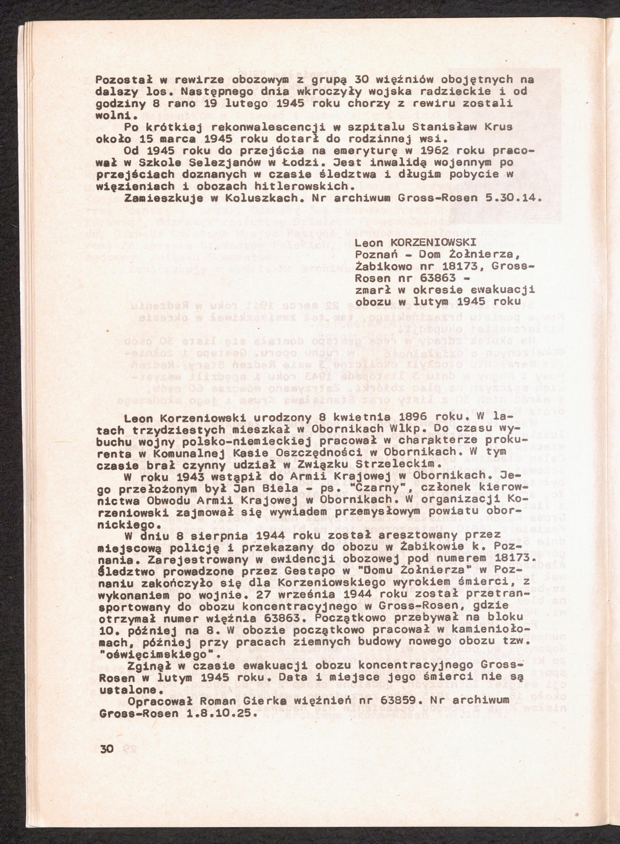 1986: Przezylismy Gross Rosen Tom IV, Biografie wieczniow, Zeszyt 4