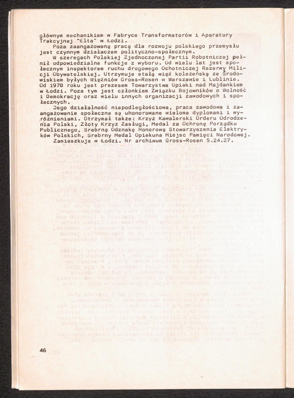 1986: Przezylismy Gross Rosen Tom IV, Biografie wieczniow, Zeszyt 4