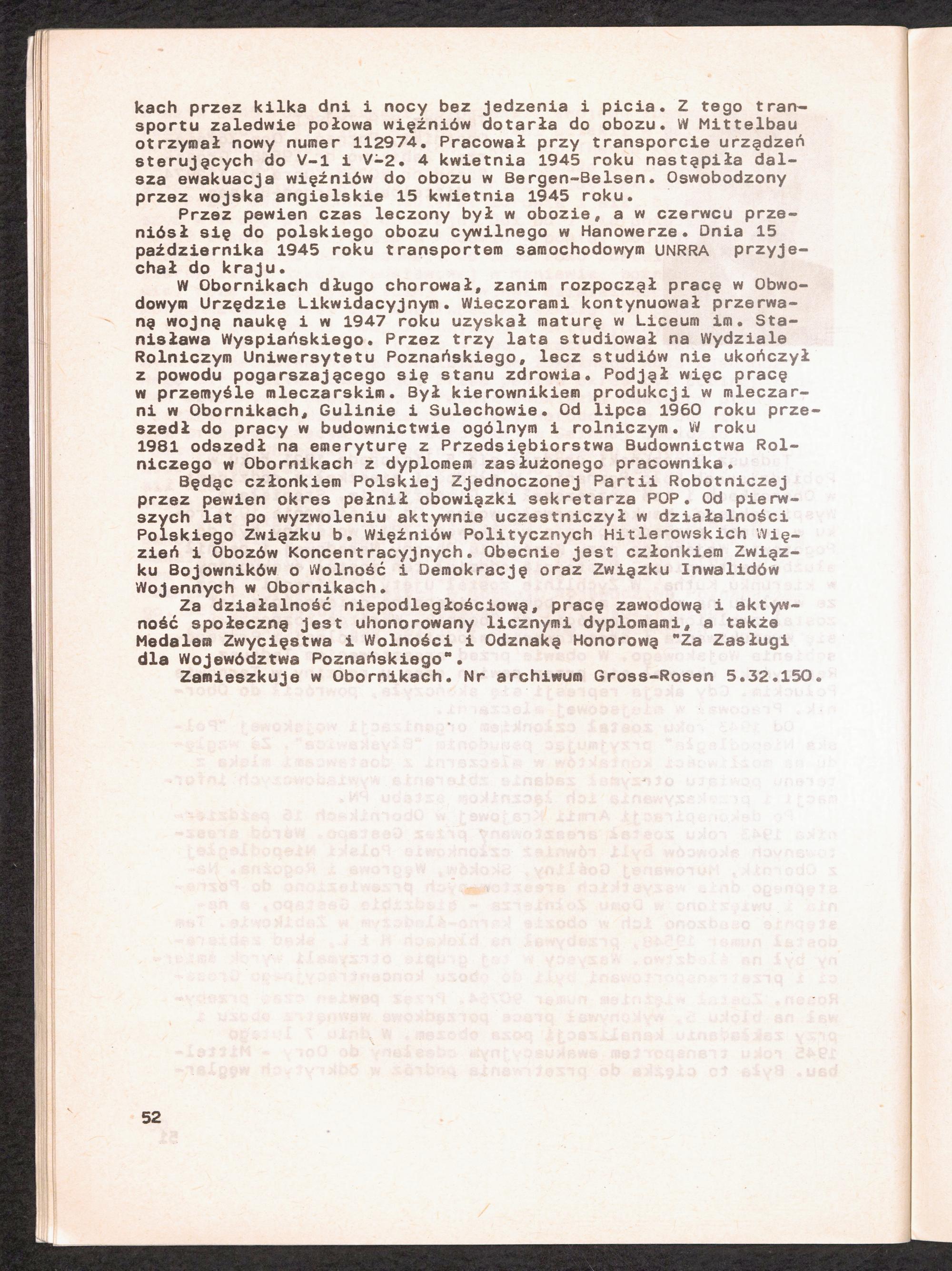 1986: Przezylismy Gross Rosen Tom IV, Biografie wieczniow, Zeszyt 4