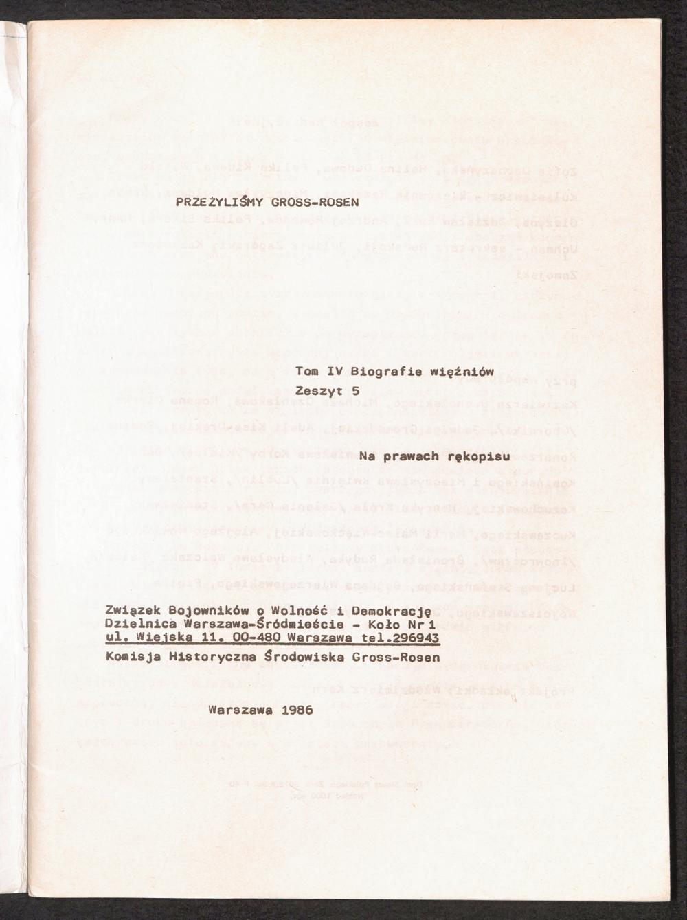 1986: Przezylismy Gross Rosen Tom IV, Biografie wieczniow, Zeszyt 5