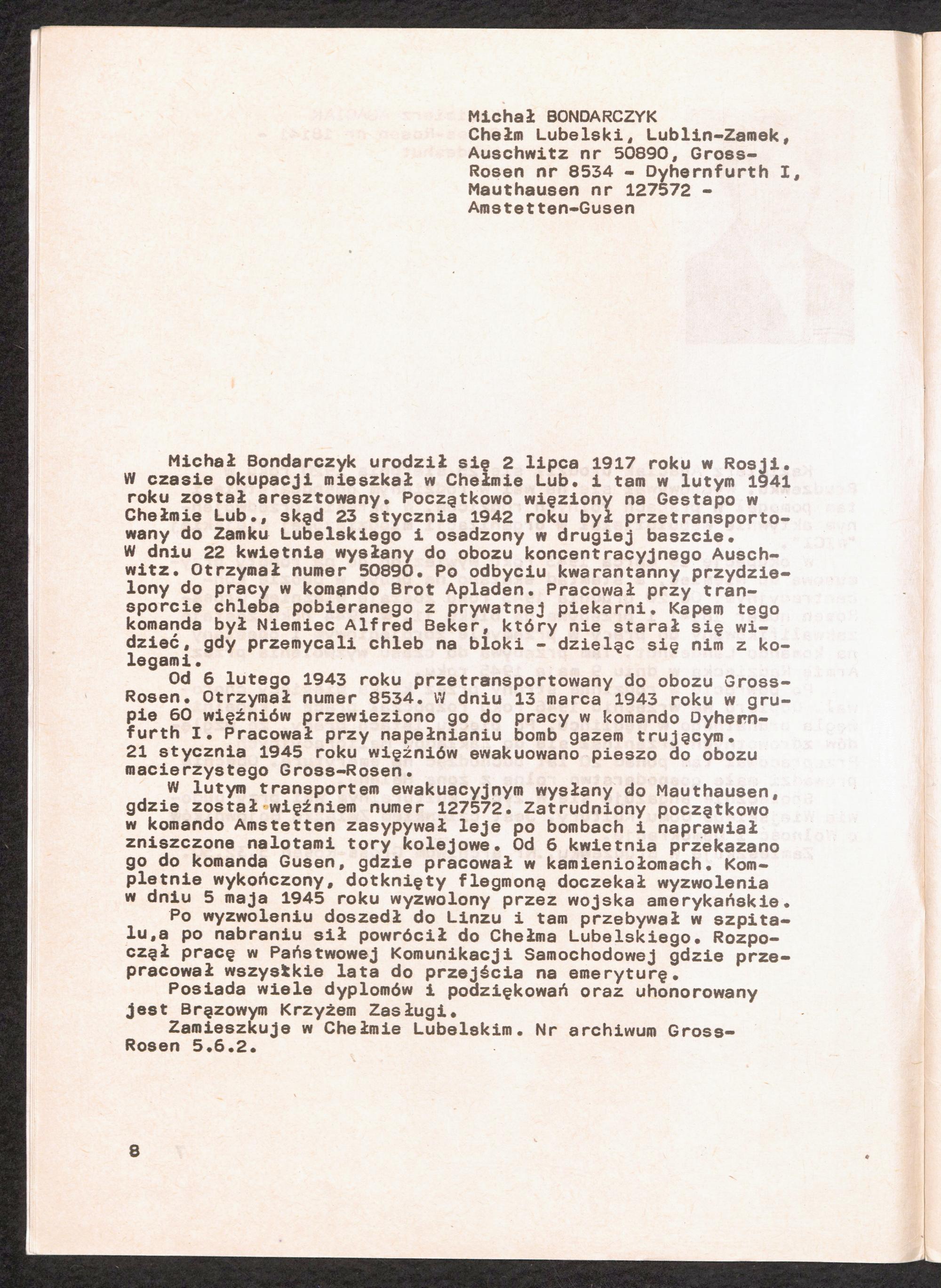 1986: Przezylismy Gross Rosen Tom IV, Biografie wieczniow, Zeszyt 5