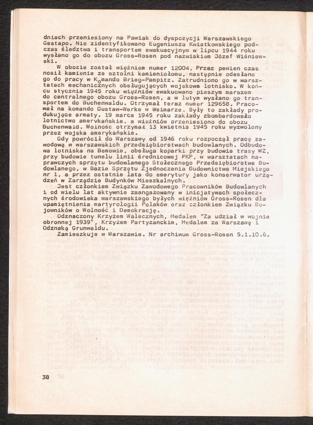 1986: Przezylismy Gross Rosen Tom IV, Biografie wieczniow, Zeszyt 5