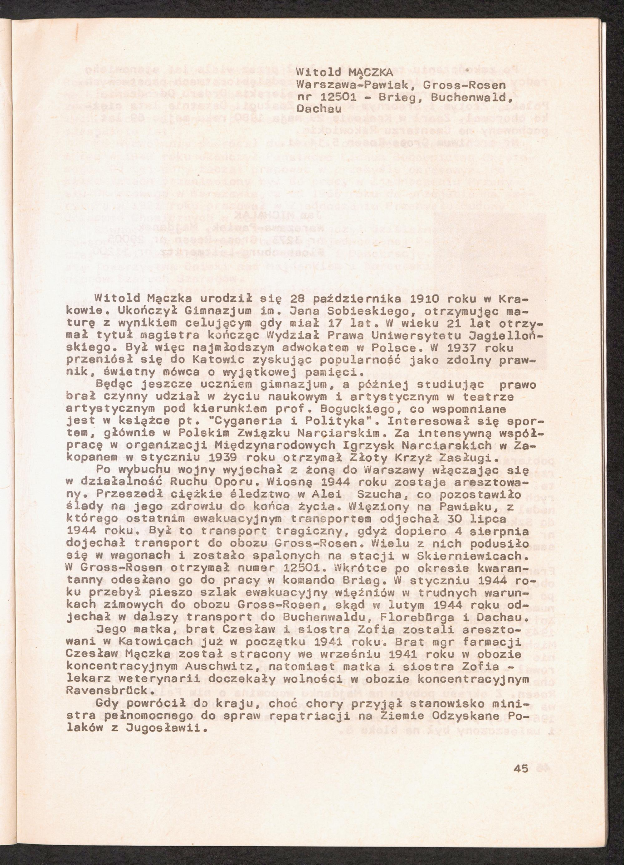 1986: Przezylismy Gross Rosen Tom IV, Biografie wieczniow, Zeszyt 5