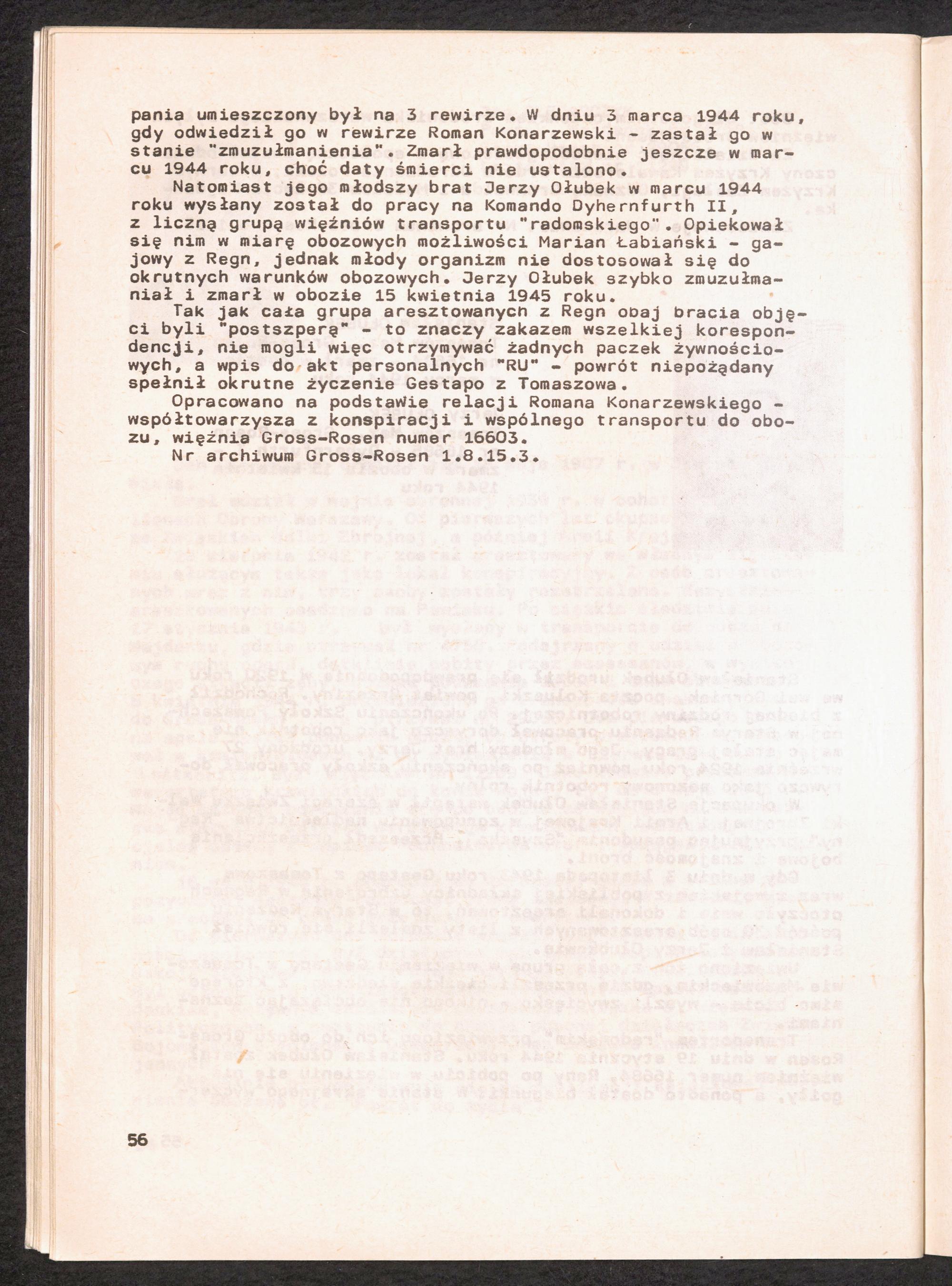 1986: Przezylismy Gross Rosen Tom IV, Biografie wieczniow, Zeszyt 5