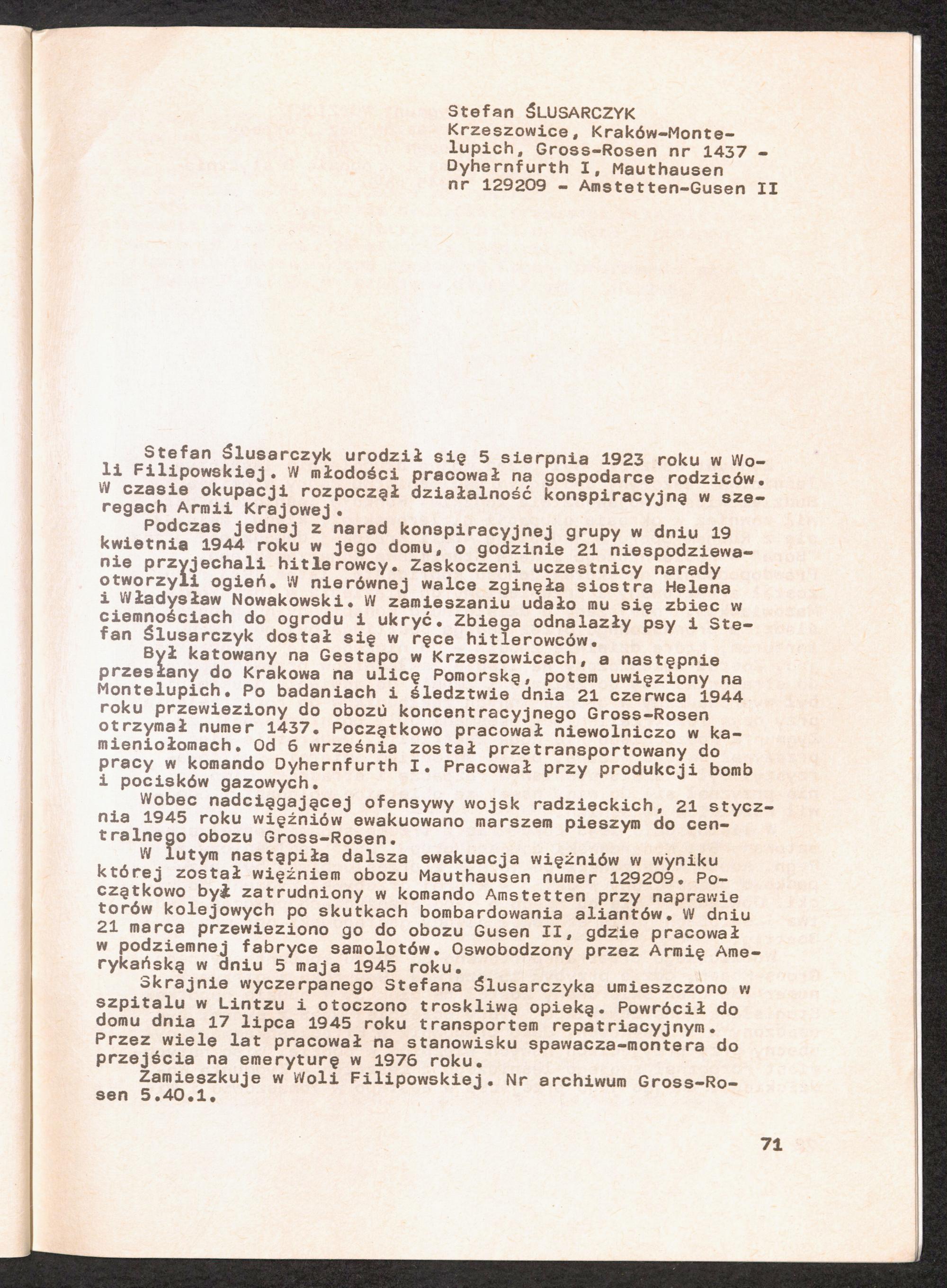 1986: Przezylismy Gross Rosen Tom IV, Biografie wieczniow, Zeszyt 5