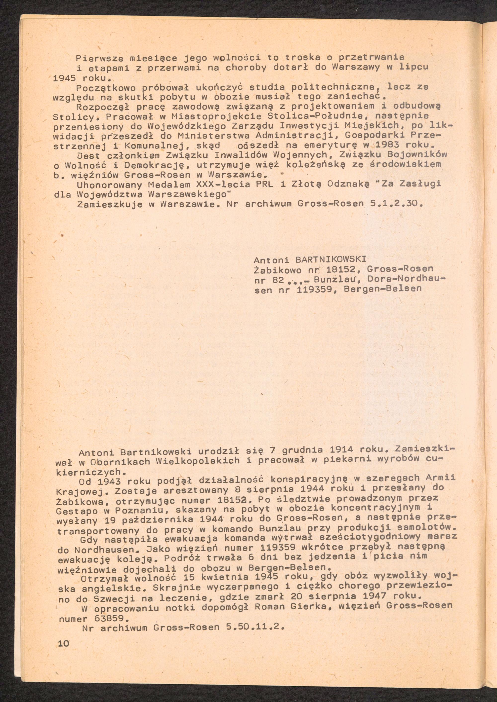 1987: Przezylismy Gross Rosen Tom IV, Biografie wieczniow, Zeszyt 6