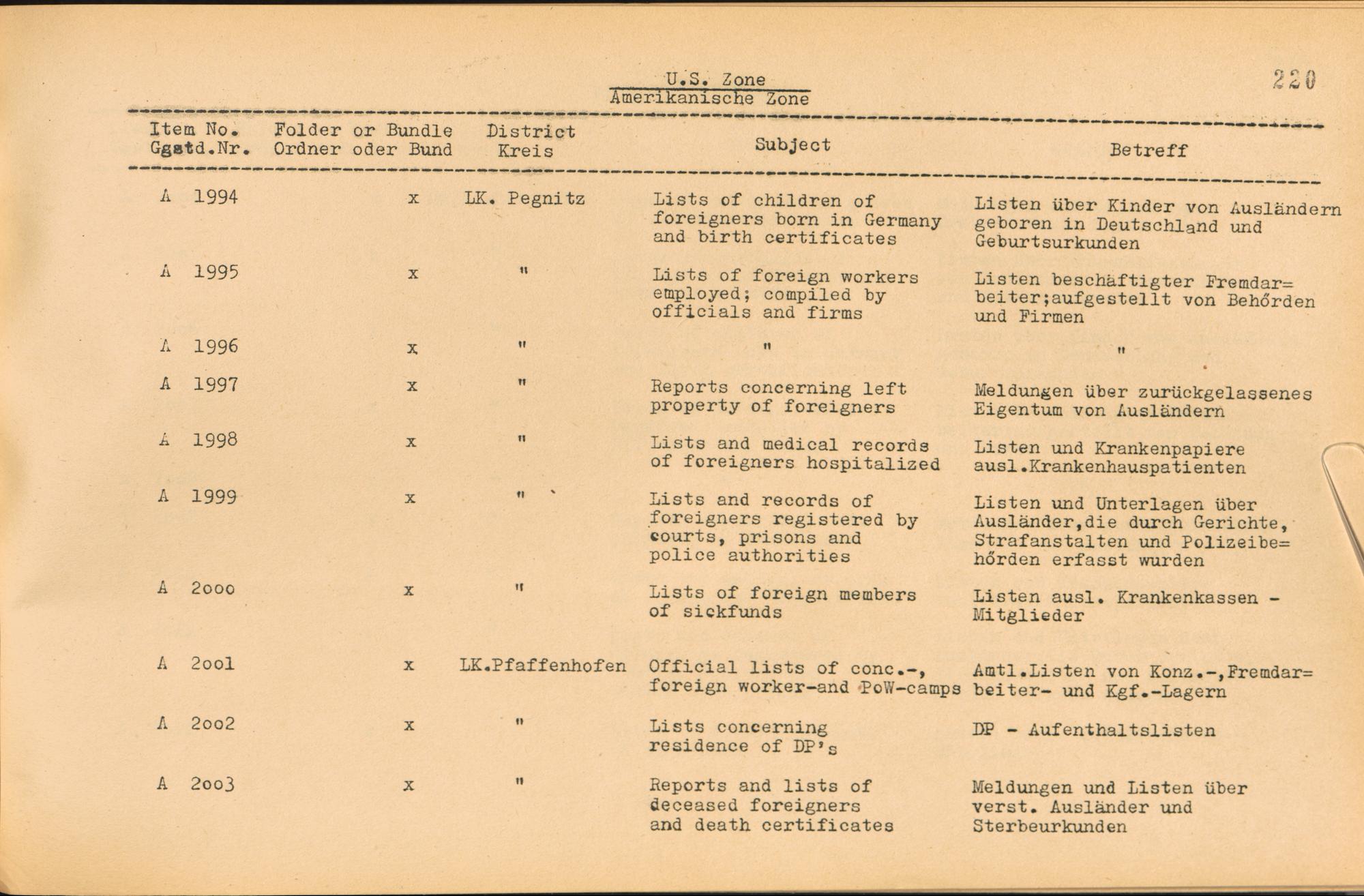 Vol. II (1954) Catalogue of Records held by the International Tracing Service of the Allied High Commission For Germany at Arolsen