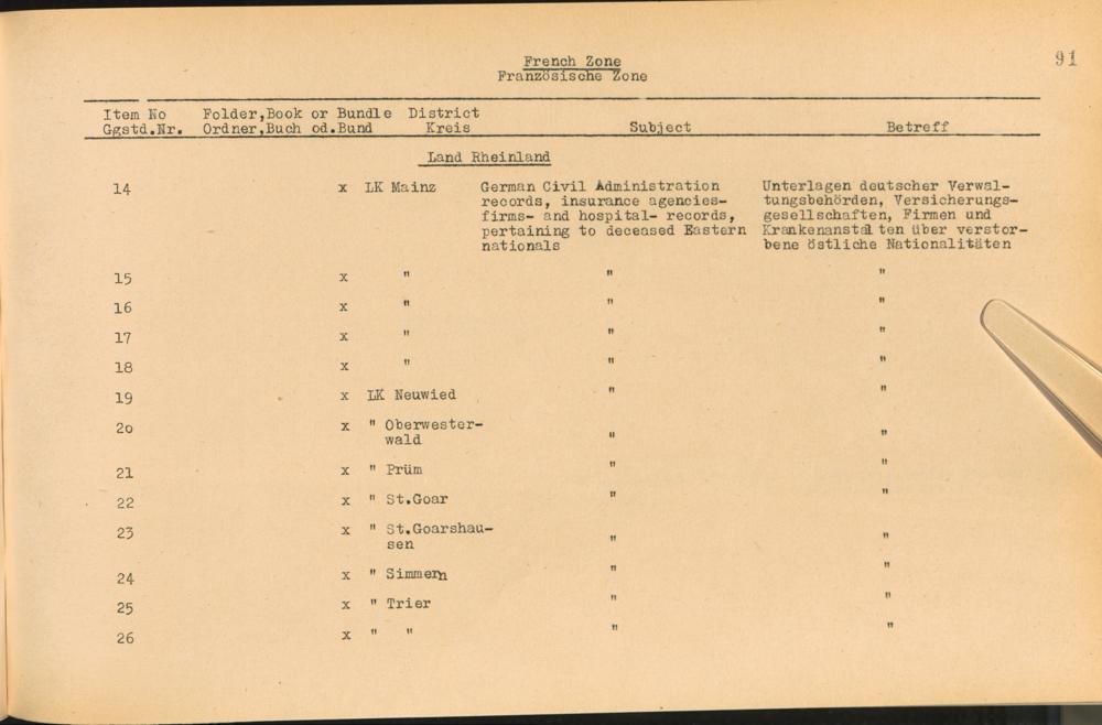Vol. IV (1954) Catalogue of Records held by the International Tracing Service of the Allied High Commission For Germany at Arolsen
