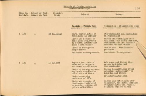 Vol. IV (1954) Catalogue of Records held by the International Tracing Service of the Allied High Commission For Germany at Arolsen