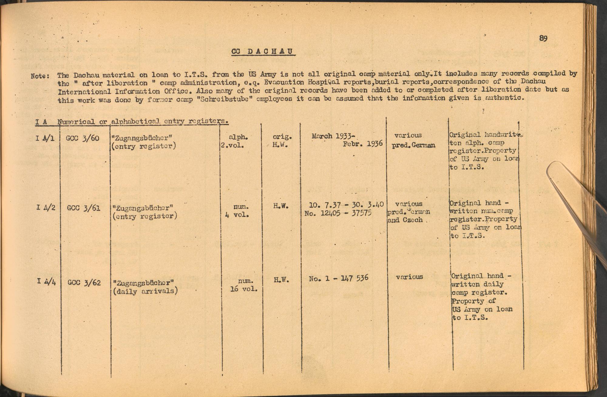 Band 1: Catalogue of Concentration Camp Records held by the International Tracing Service of the Allied High Commission for Germany, Volume I