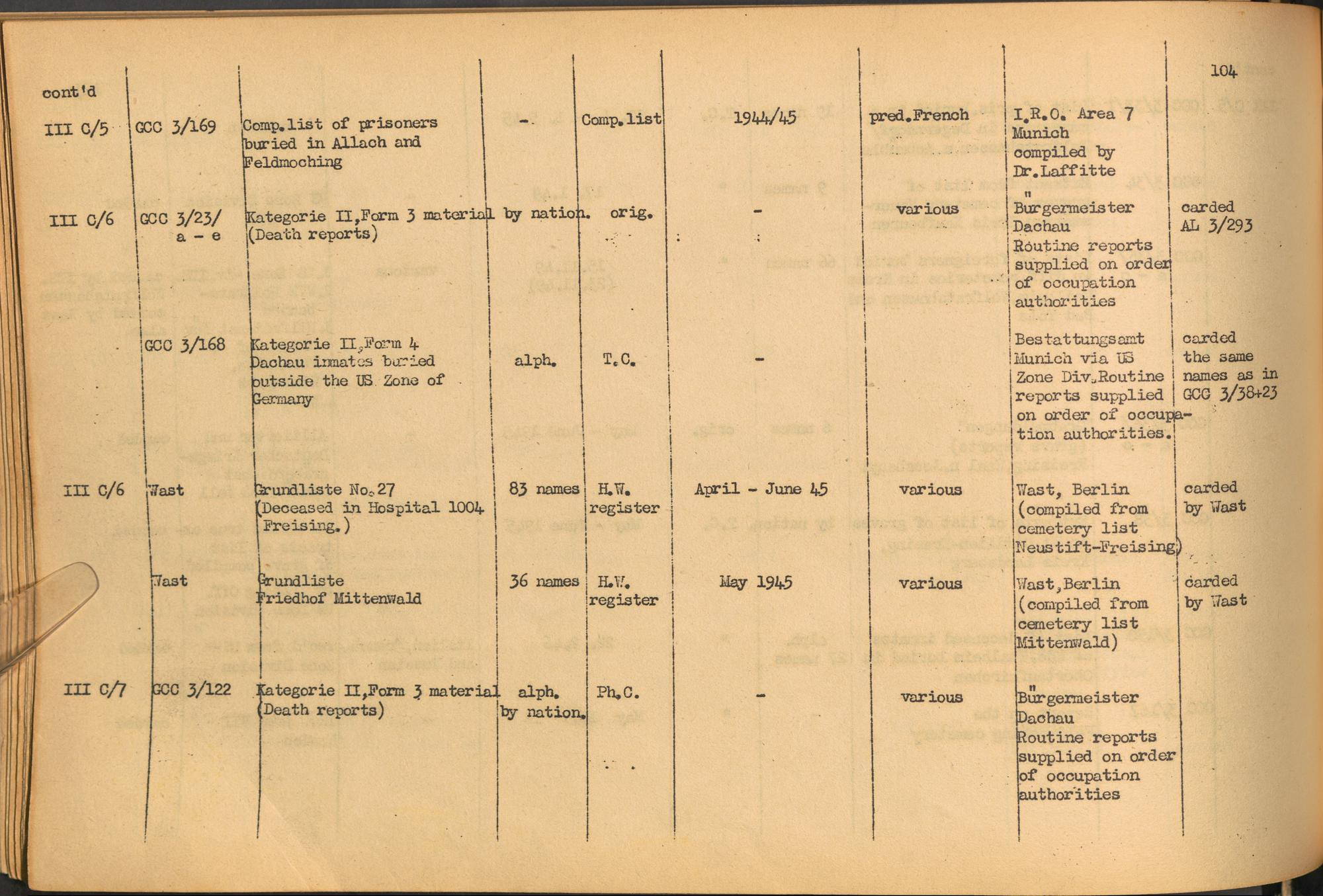 Band 1: Catalogue of Concentration Camp Records held by the International Tracing Service of the Allied High Commission for Germany, Volume I