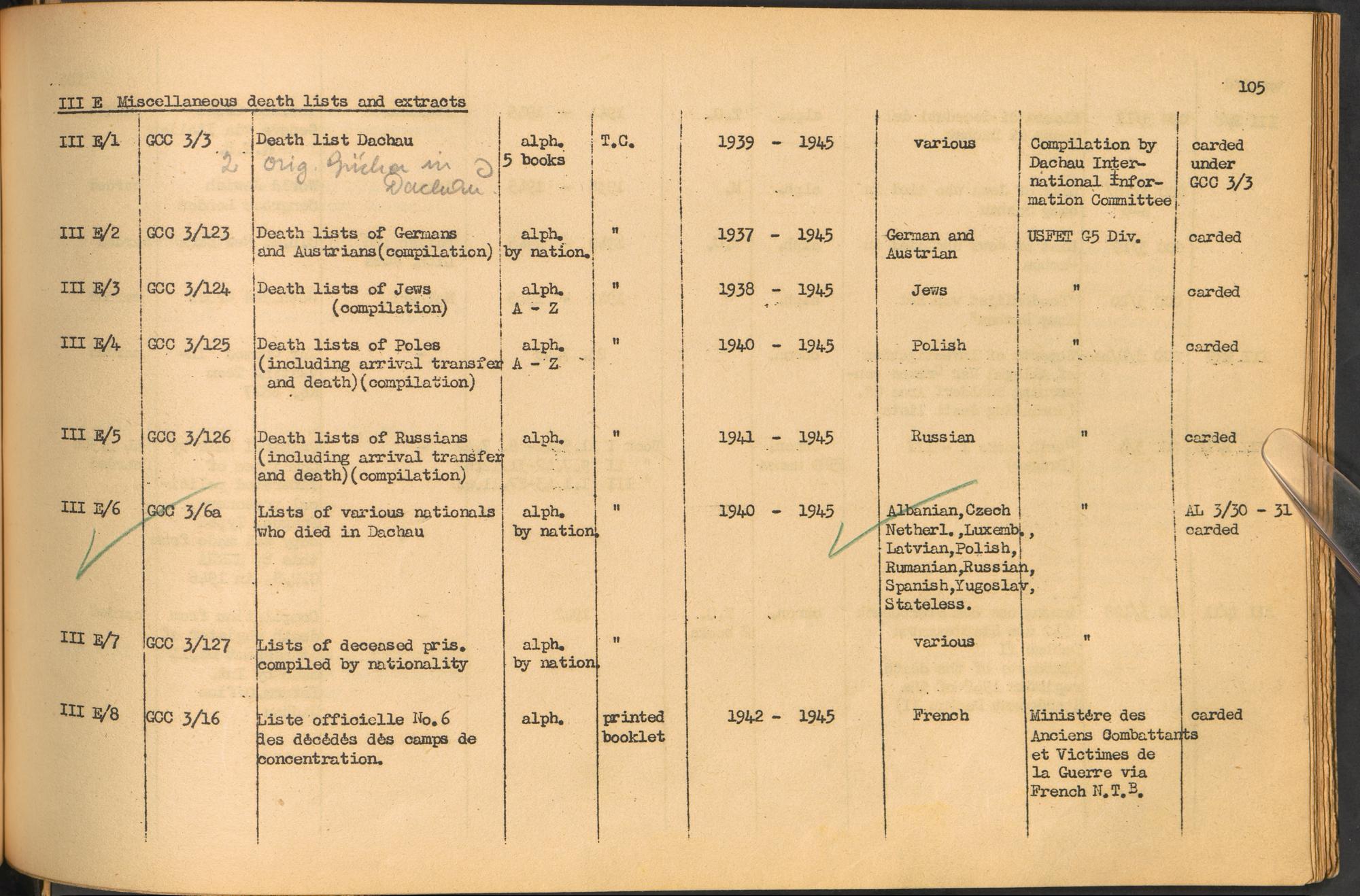 Band 1: Catalogue of Concentration Camp Records held by the International Tracing Service of the Allied High Commission for Germany, Volume I