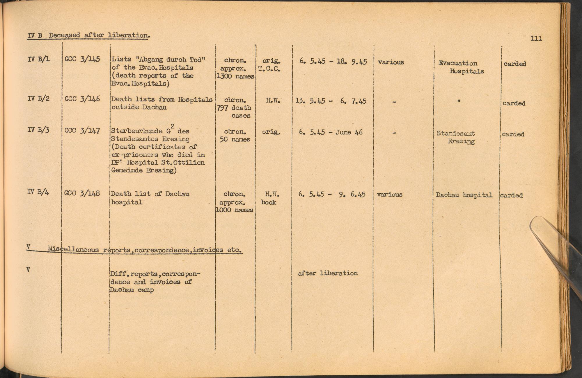 Band 1: Catalogue of Concentration Camp Records held by the International Tracing Service of the Allied High Commission for Germany, Volume I