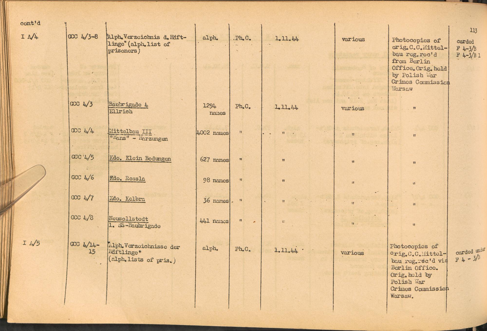 Band 1: Catalogue of Concentration Camp Records held by the International Tracing Service of the Allied High Commission for Germany, Volume I